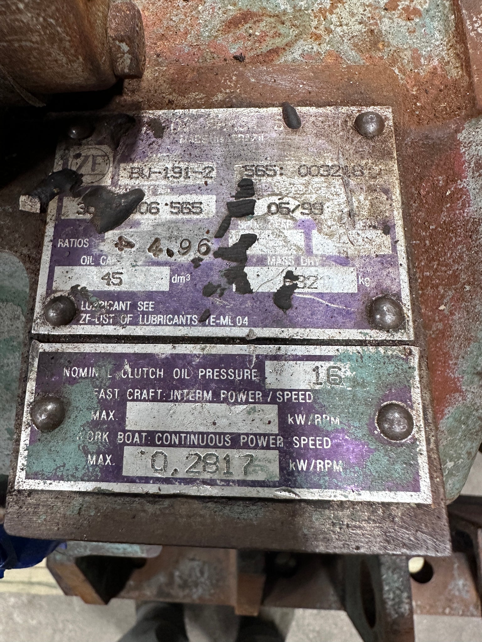 ZF Marine BW-191-2 Marine Gear, 4.96 Ratio, Used