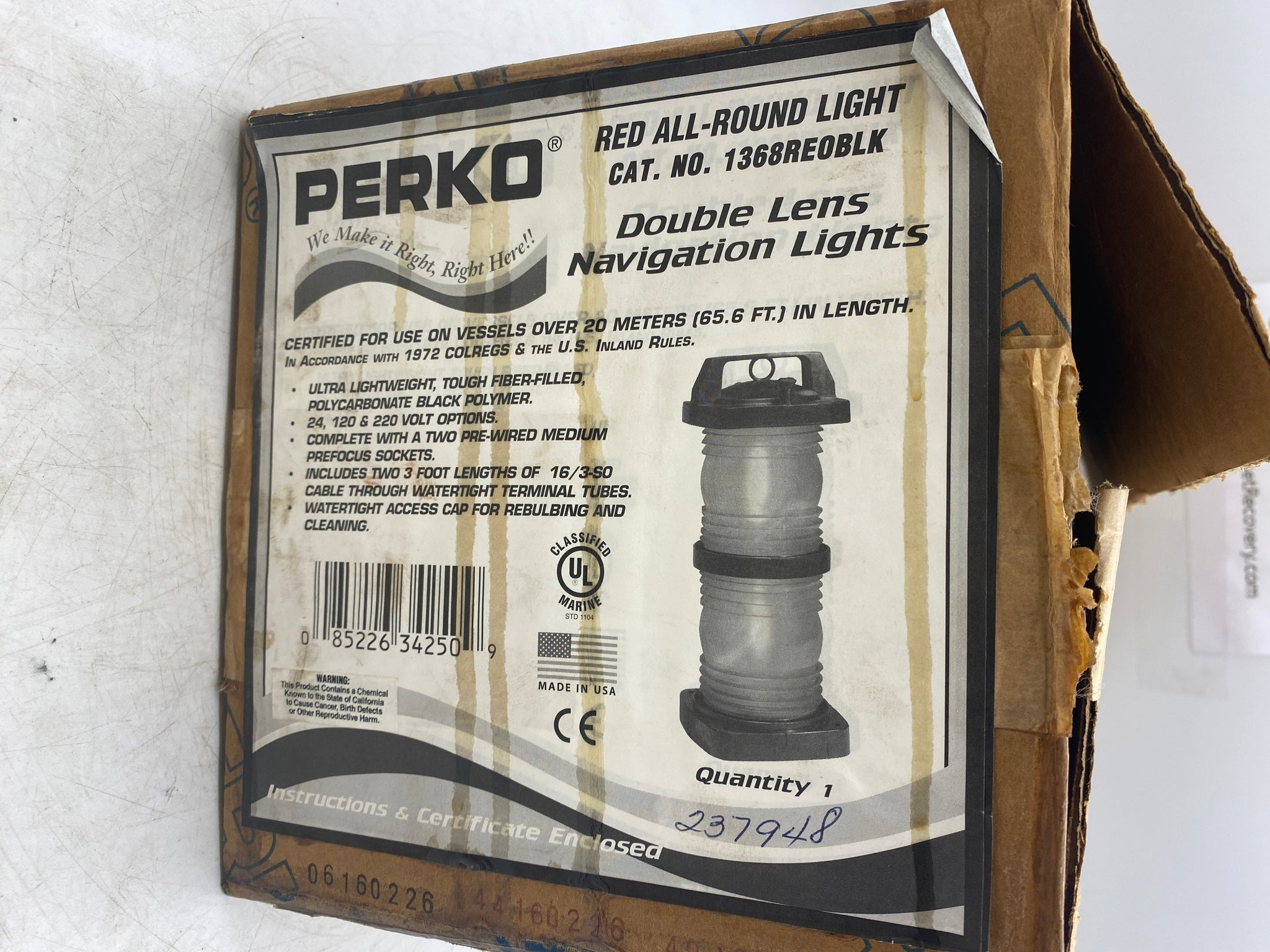 Perko 1368REOBLK Red All-Round Light, 24, 120 or 220 Volt, Used-1 Bulb Included