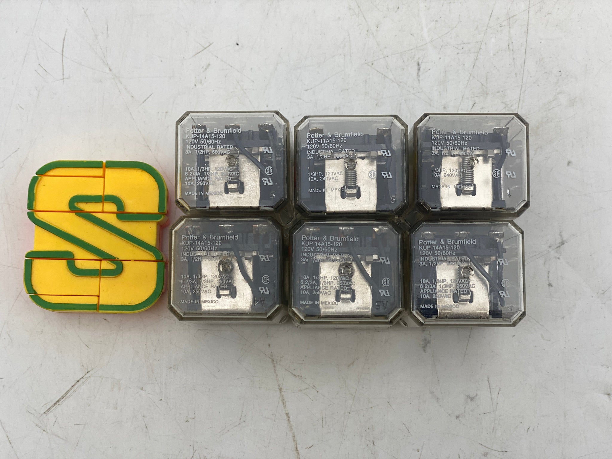 Potter & Brumfield KUP-14A15-120 Relay, 120V, 10A, *Lot of (6)*, New-No Box-Items May Exhibit Wear From Storage-See Pictures