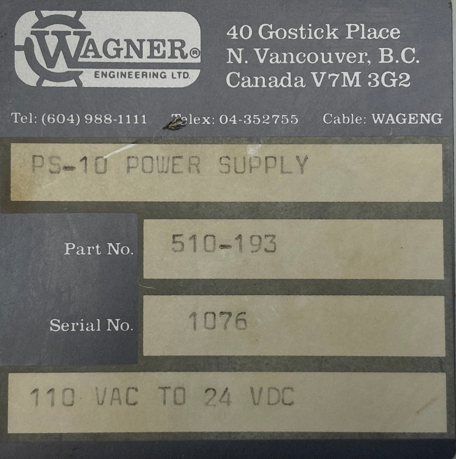 Wagner 510-322 PS11 Enclosed Power Supply 115VAC Input 12VDC 15A Max. Output/24 VDC 9A Max. Output, Used-Wagner 510-332 PS11 Power Supply Retrofitted In Wagner 510-193 PS-10 Enclosure-See Pictures