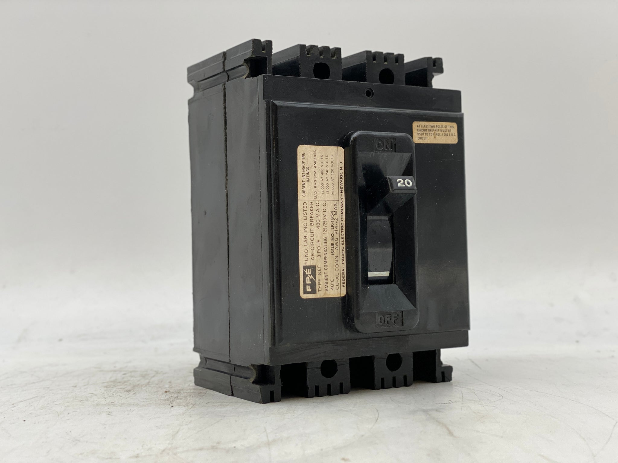 FPE Type NEF Circuit Breaker, 20A, 480VAC, 3-Pole, Used