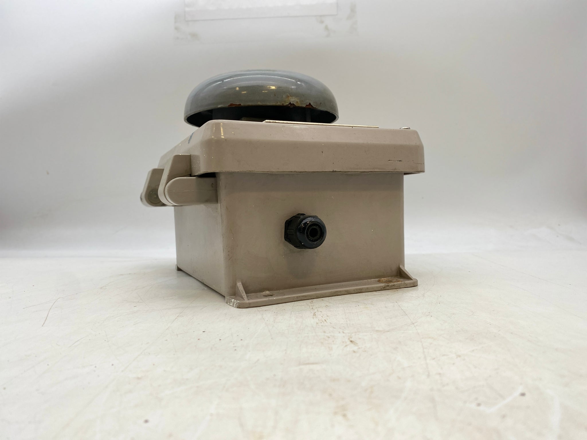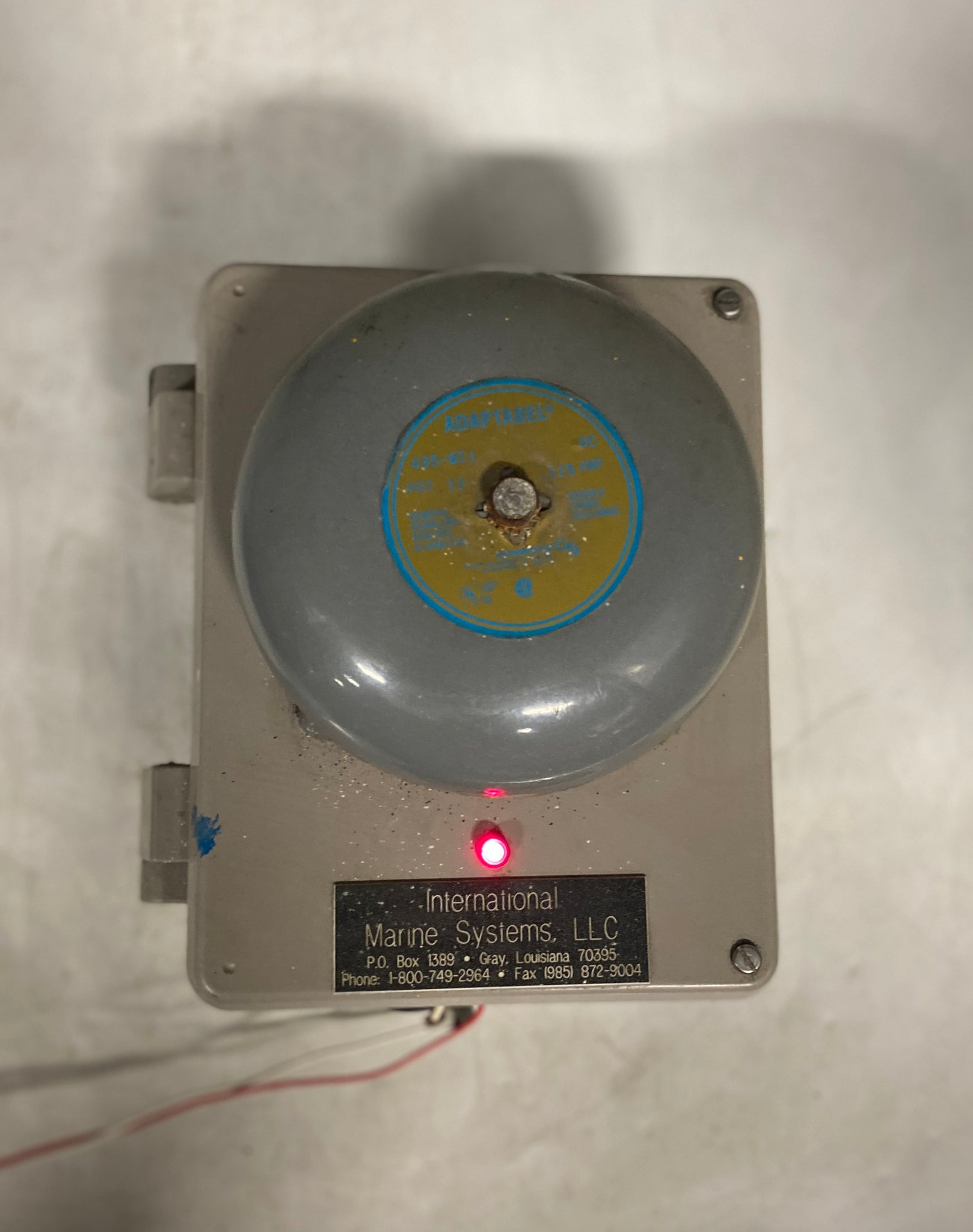 International Marine Systems 301949-1 Wrong Direction Bell, Adaptabel 435-6E1 General Signaling Non-Fire Alarm Usage Bell, 12VDC, 125A Mounted On Enclosure, Used