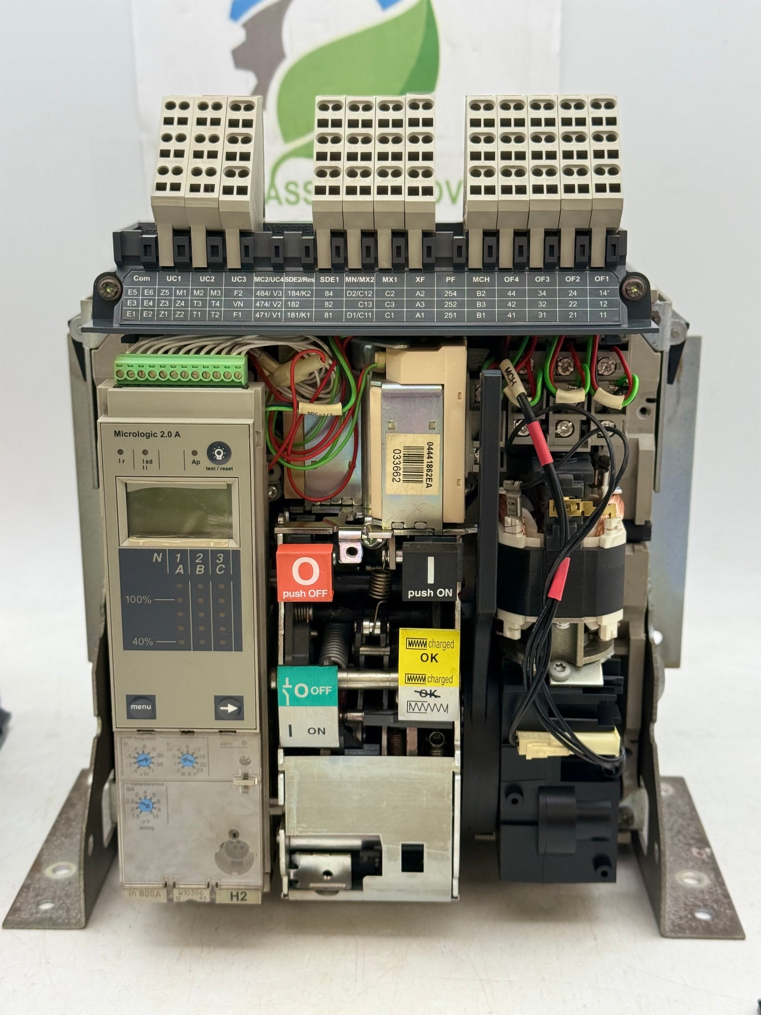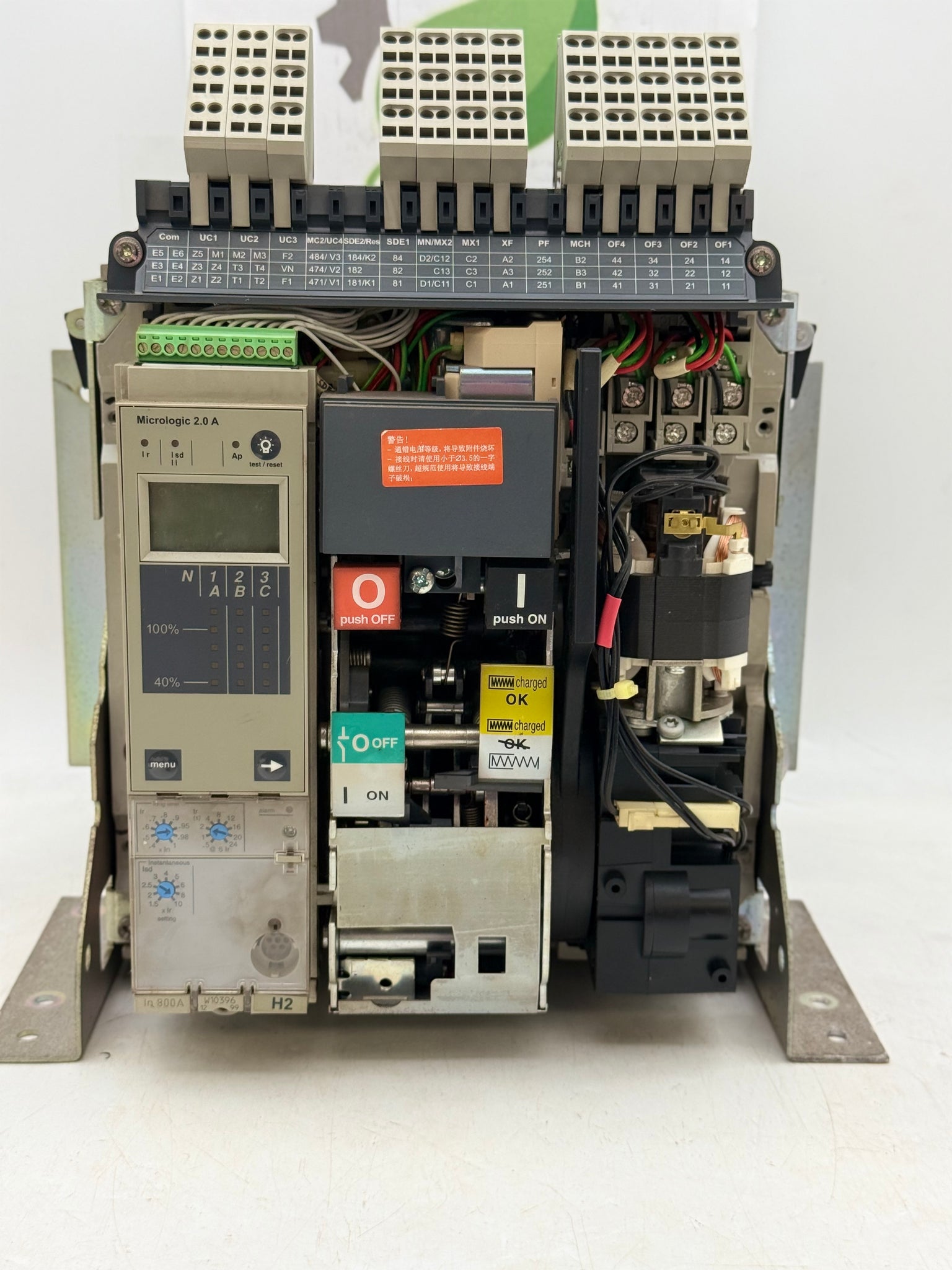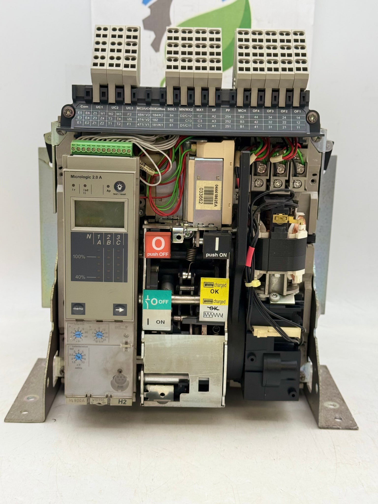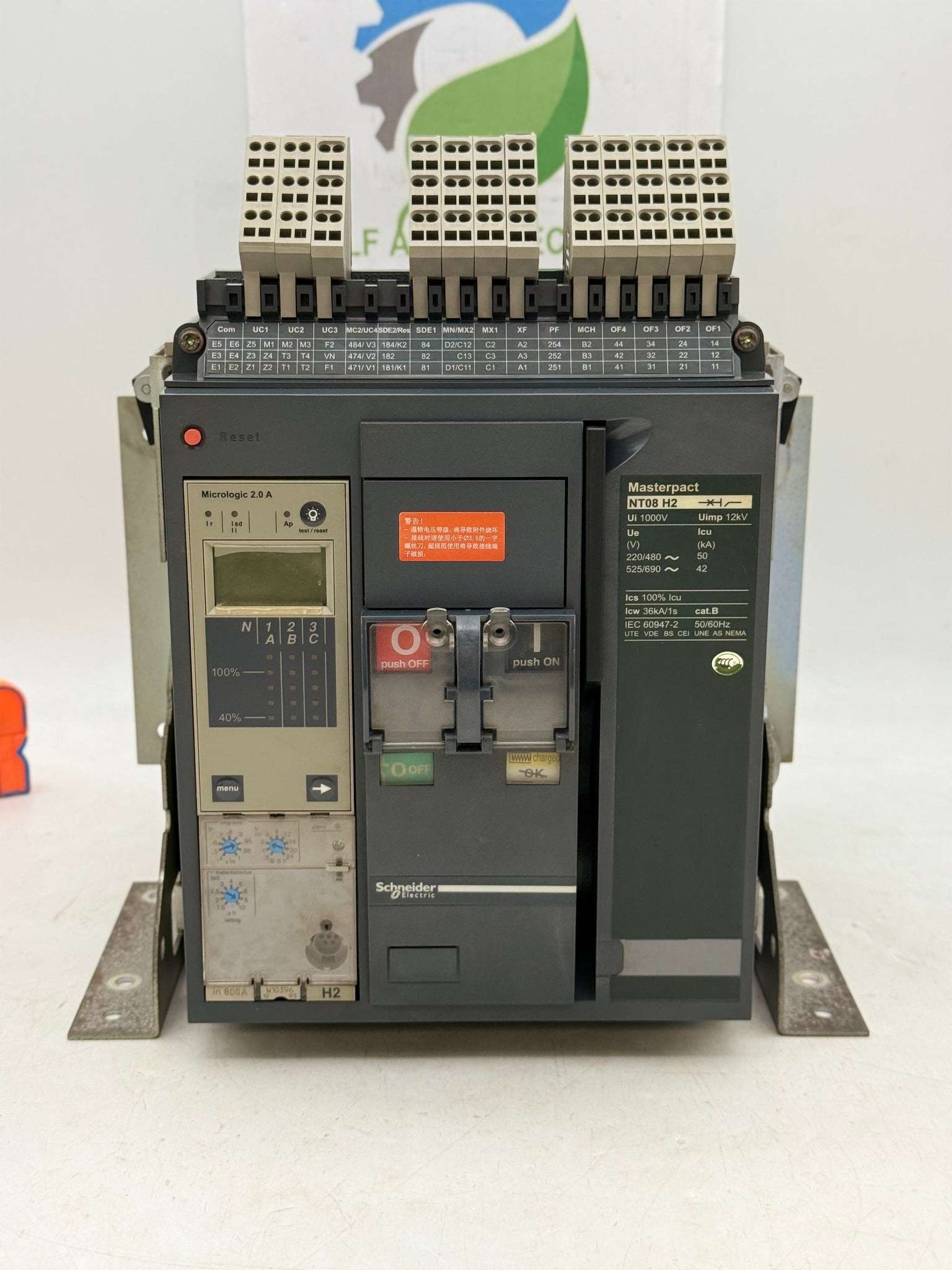Schneider Electric NT08H2 MasterPact Circuit Breaker, 800A, Fixed, 3-Pole, w/ MicroLogic 2.0A Trip Unit, 33662 MX-XF/SHT-SHC 200-250VAC/DC Shunt Trip, Used