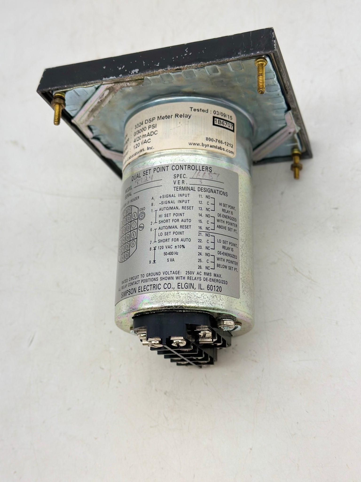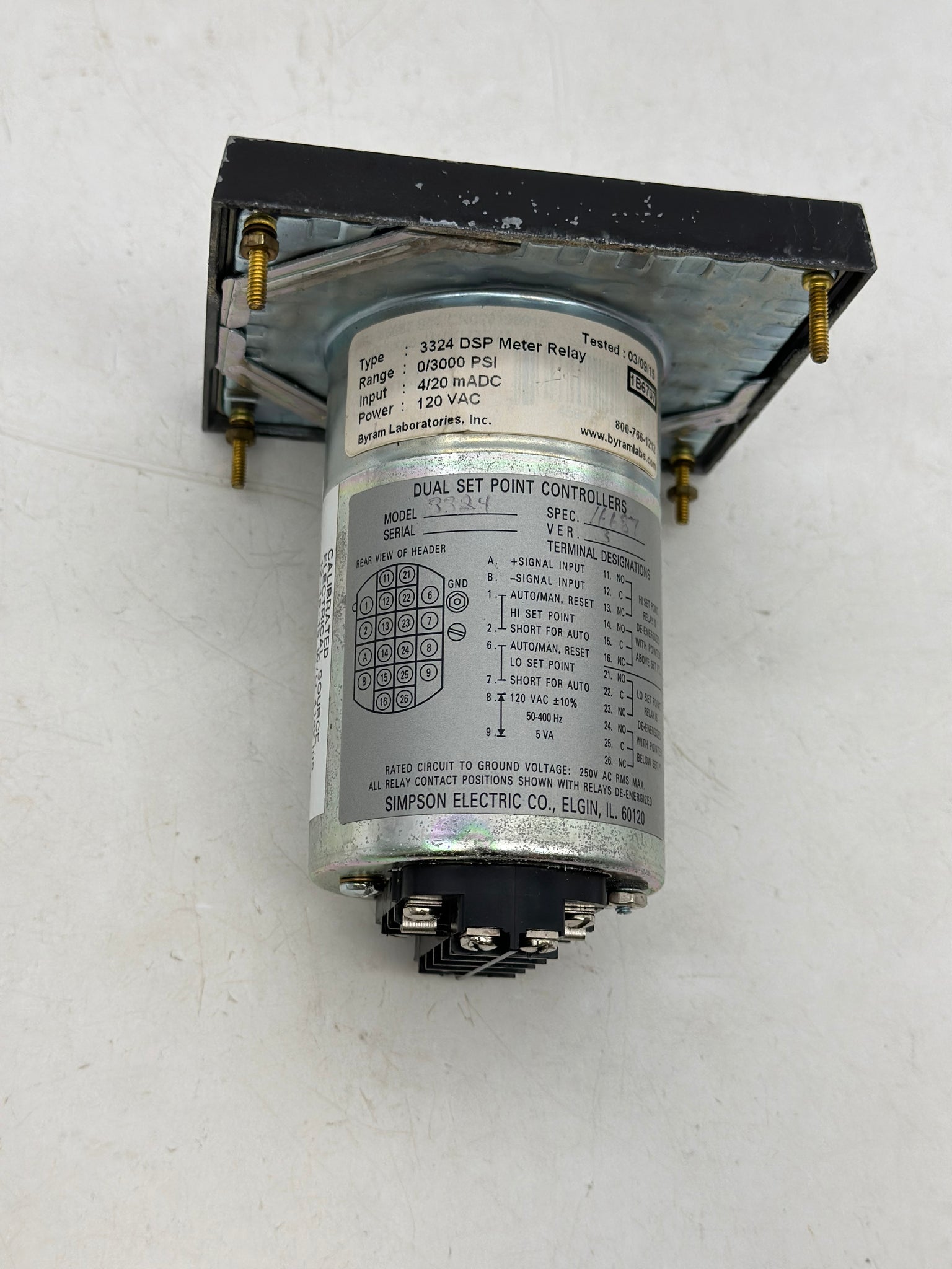 Simpson 3324 DSP Meter Relay, 0-3000 PSI Dual Setpoint Panel Meter, Used-Calibrated 12/16/19
