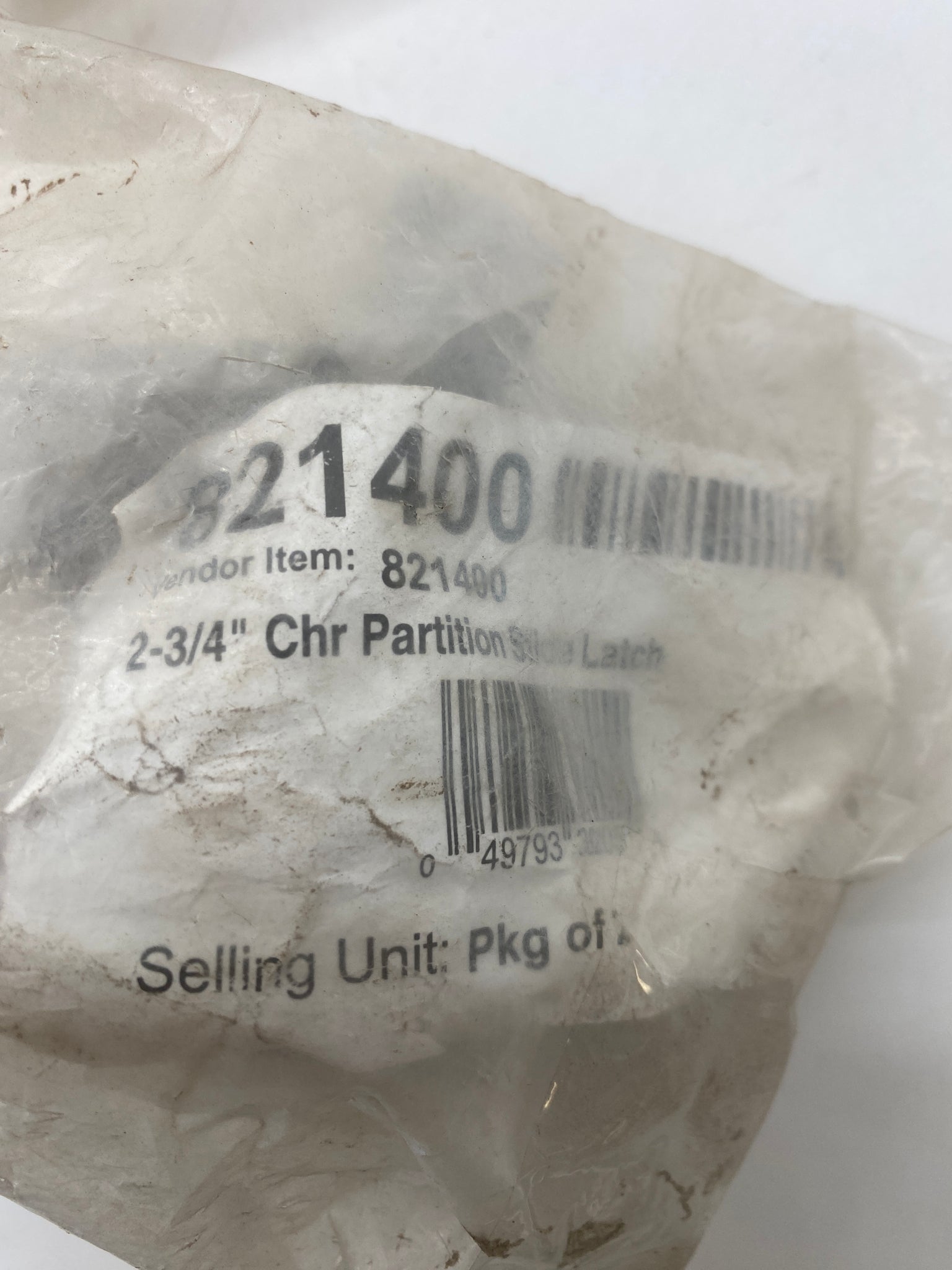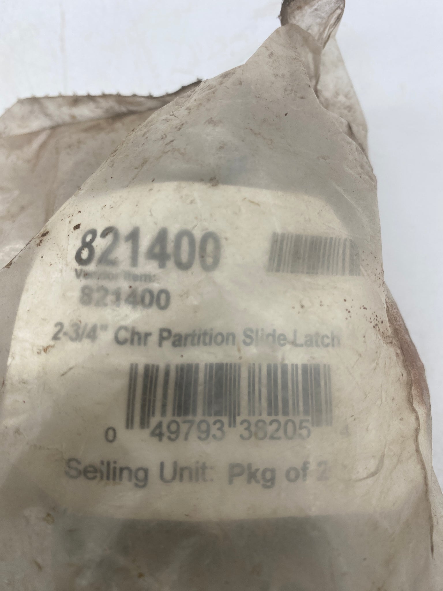 Generic Toilet Partition Slide Latch, 2-3/4" Centers, Chrome-Plated, 2/Bag, *Lot of (4) Bags / (8) Latches*, New-Packaging May Show Signs of Wear from Storage-See Pictures