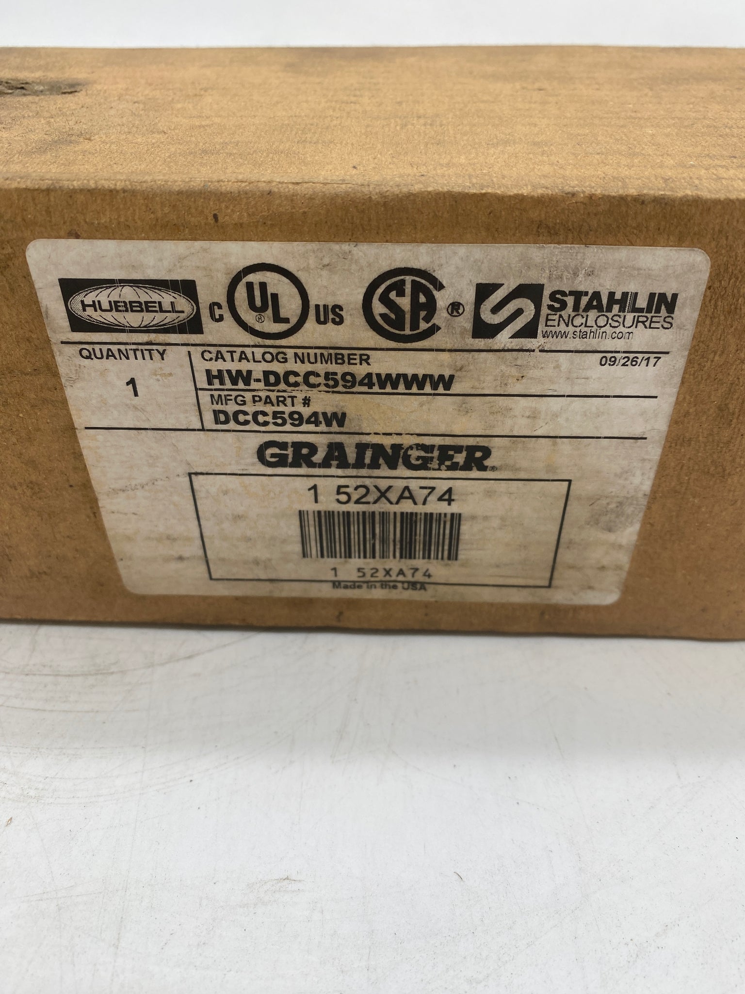 Hubbell Stahlin DCC594W (Grainger P/N: 52XA74) Nonmetallic Enclosure, New-Open Box  Box May Show Signs of Wear from Storage-See Pictures