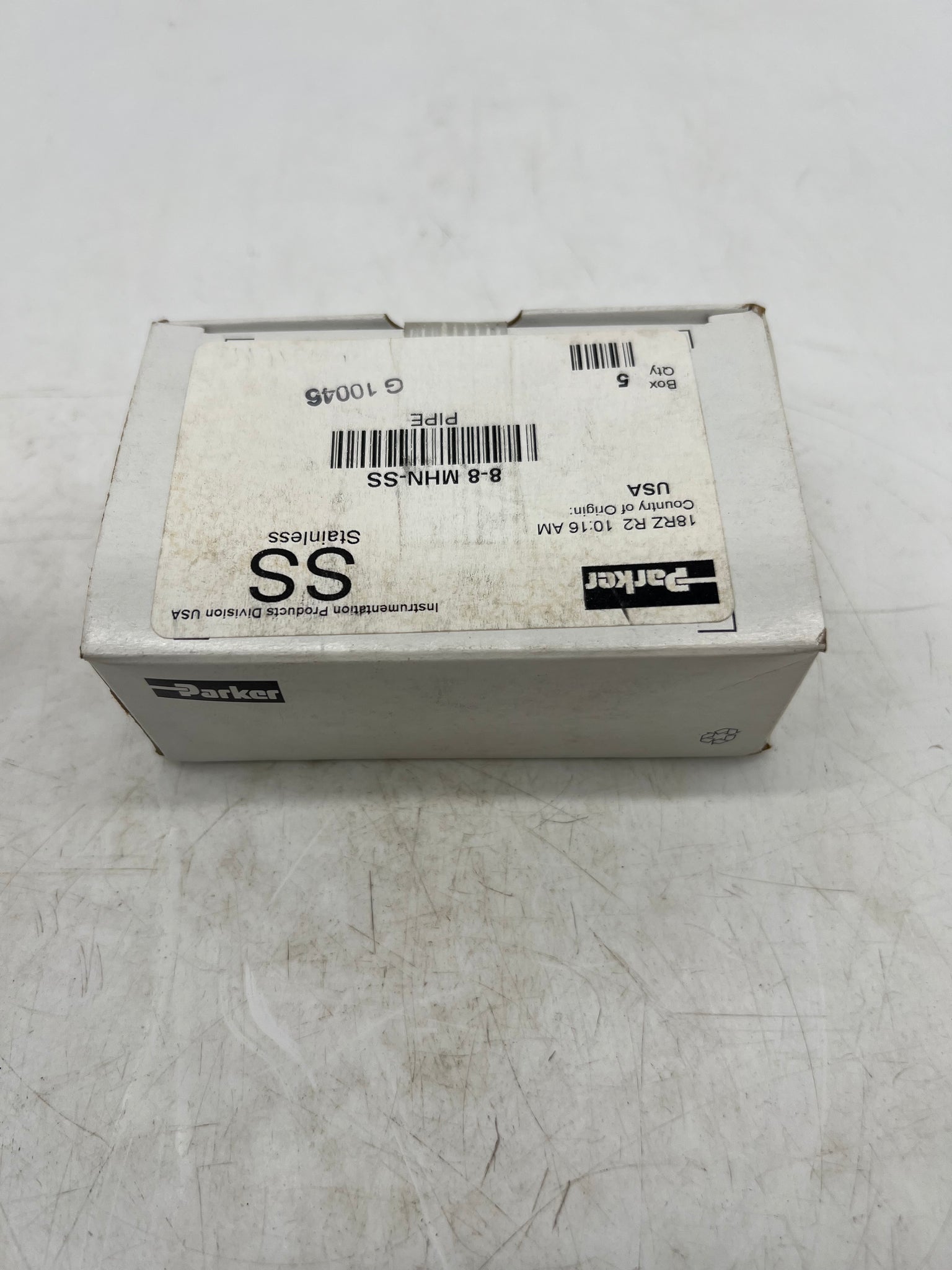 Parker 8-8 MHN-SS Male Hex Nipple, 1/2" MNPT x 1/2" MNPT, 316SS, *Box of (5)*, New - Item(s) or Packaging May Have Minor Rust/Wear From Storage - See Pictures