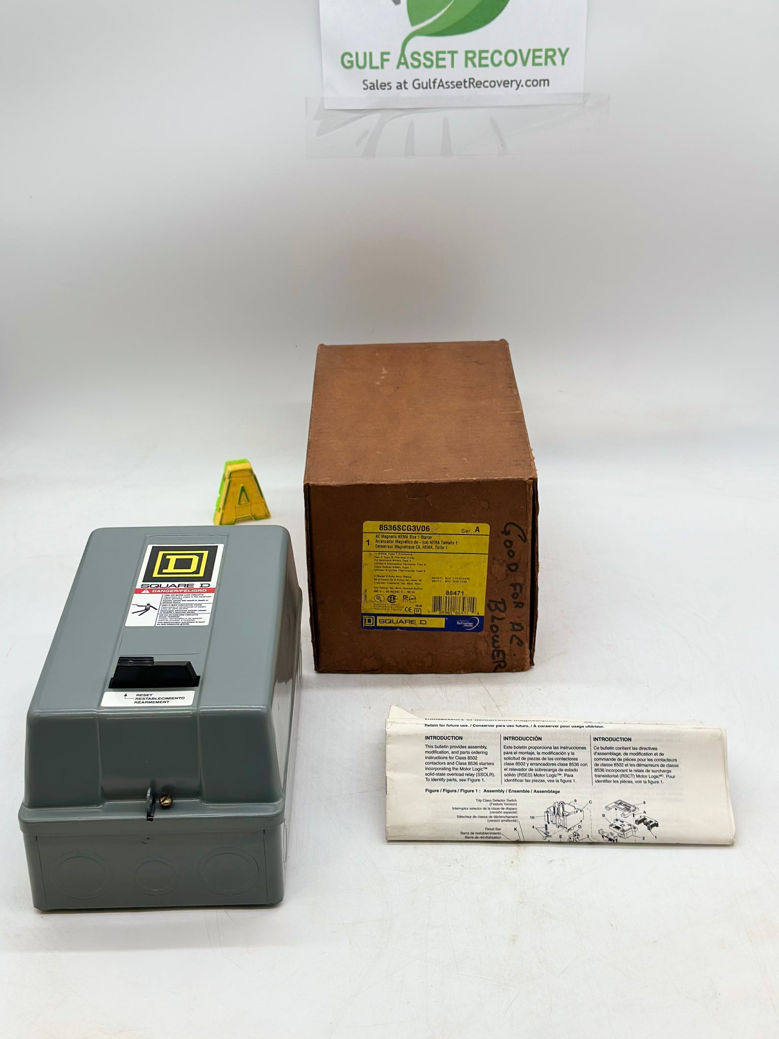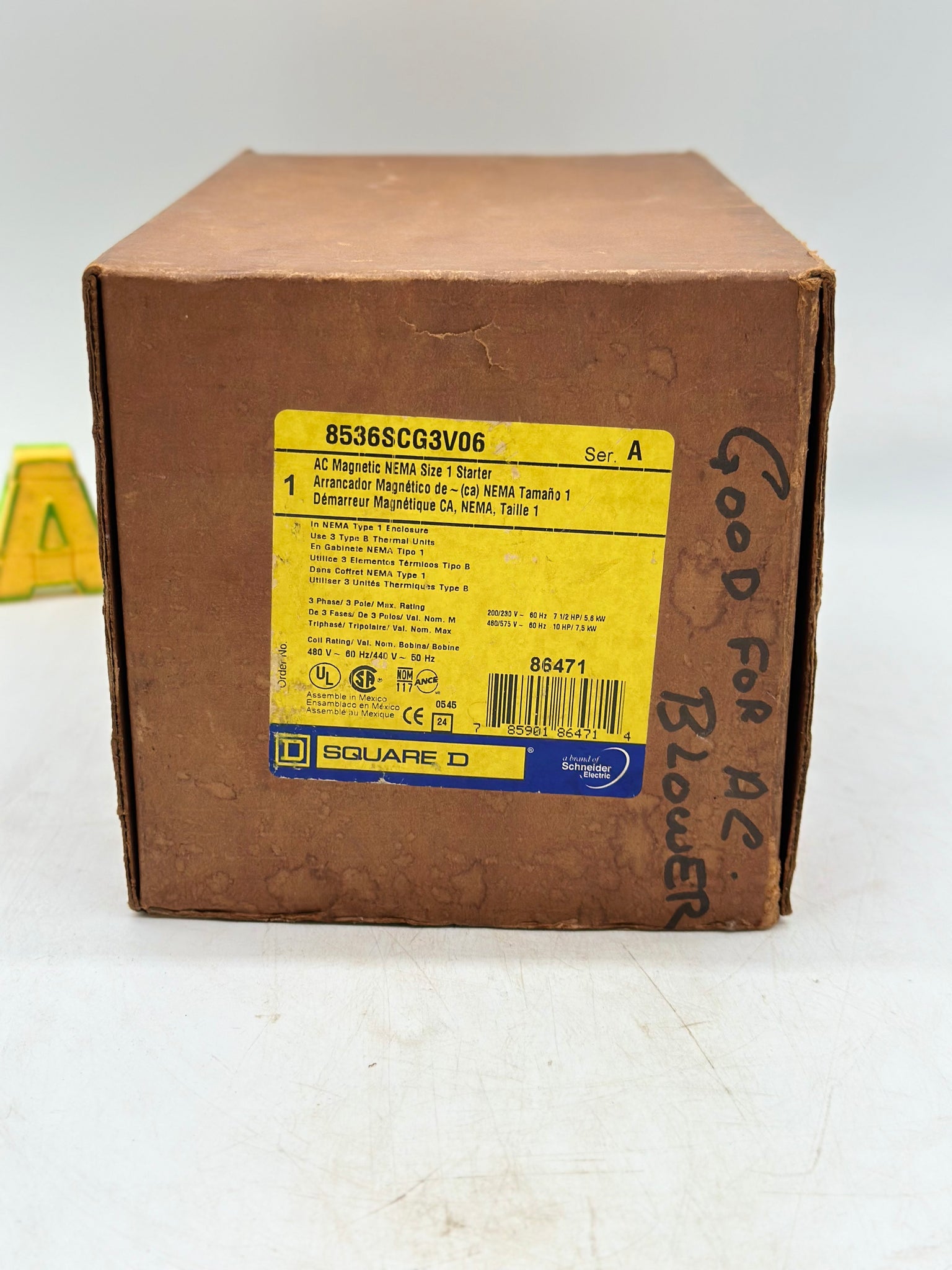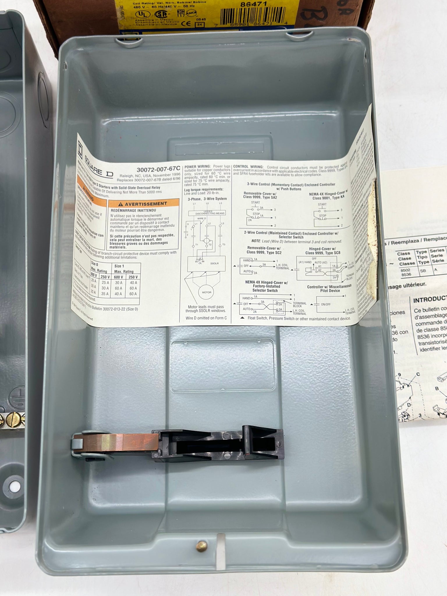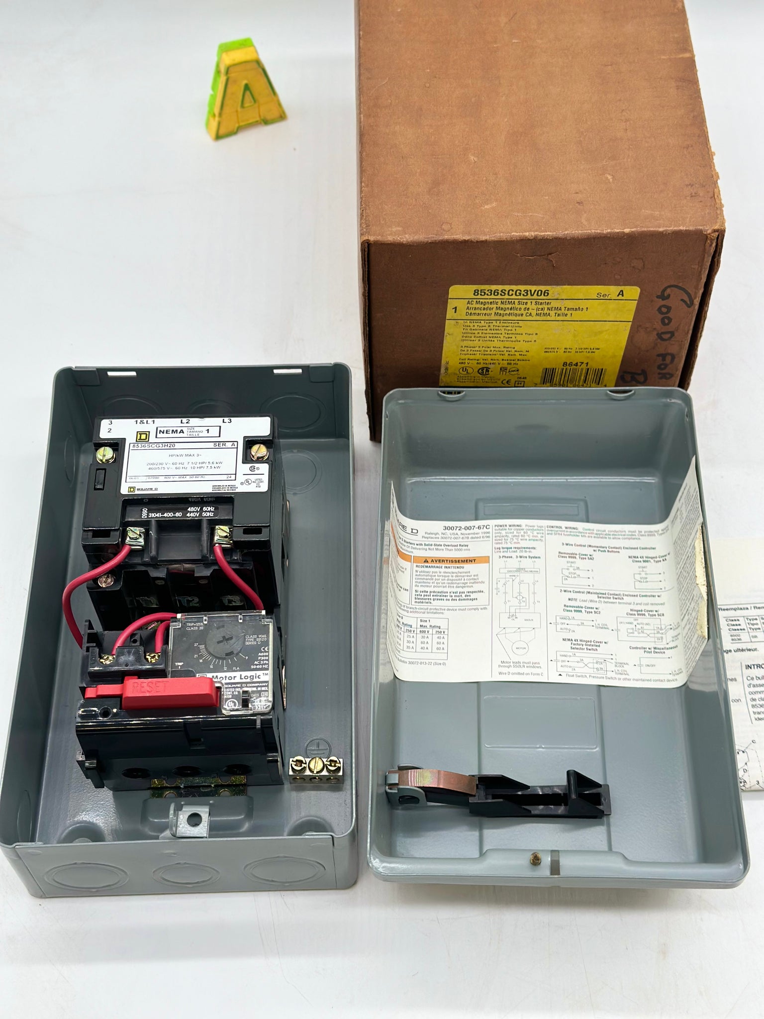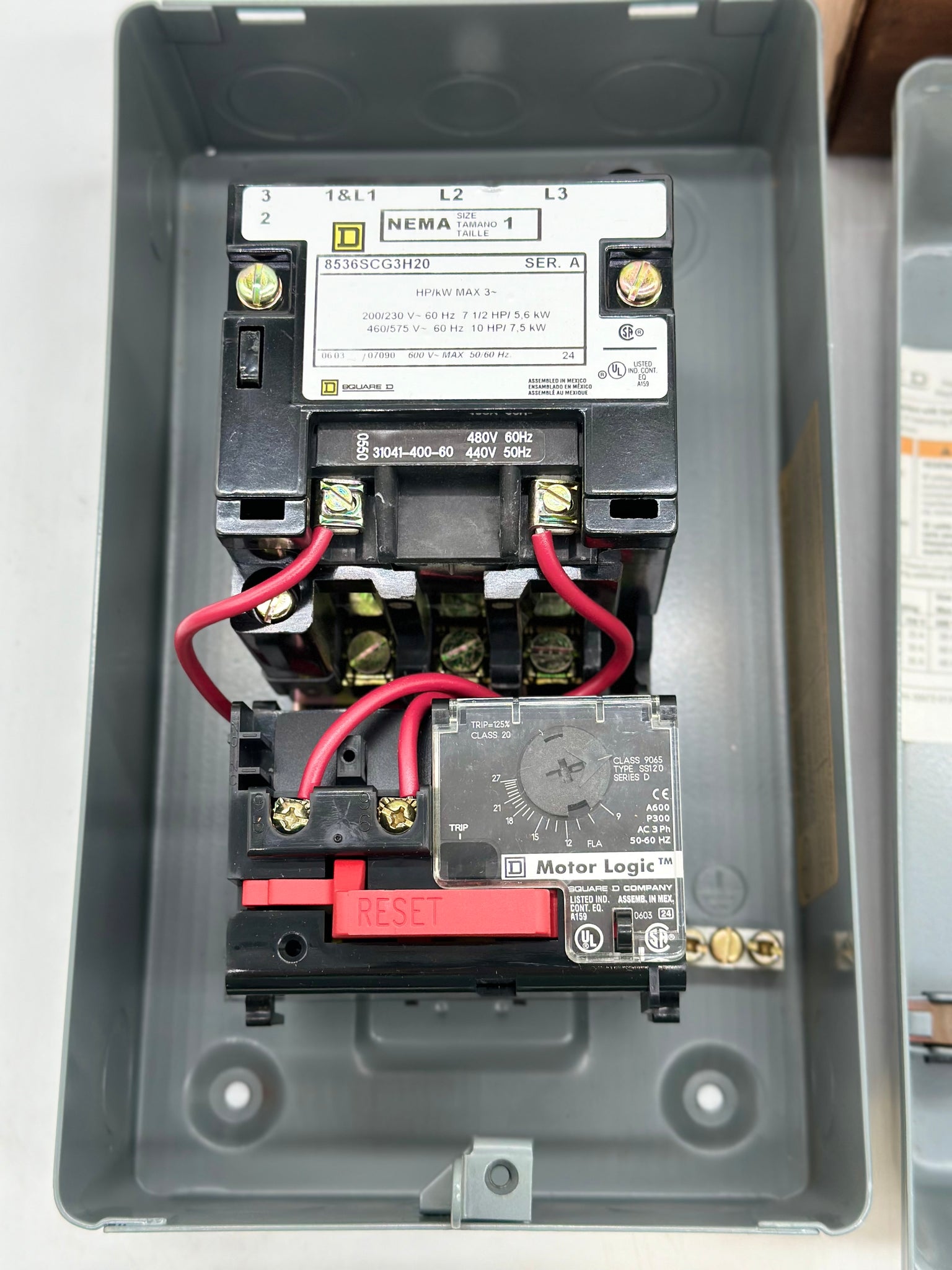Square D 8536SCG3V06H20 Series A AC Magnetic NEMA Size 1 Starter, New-Open Box