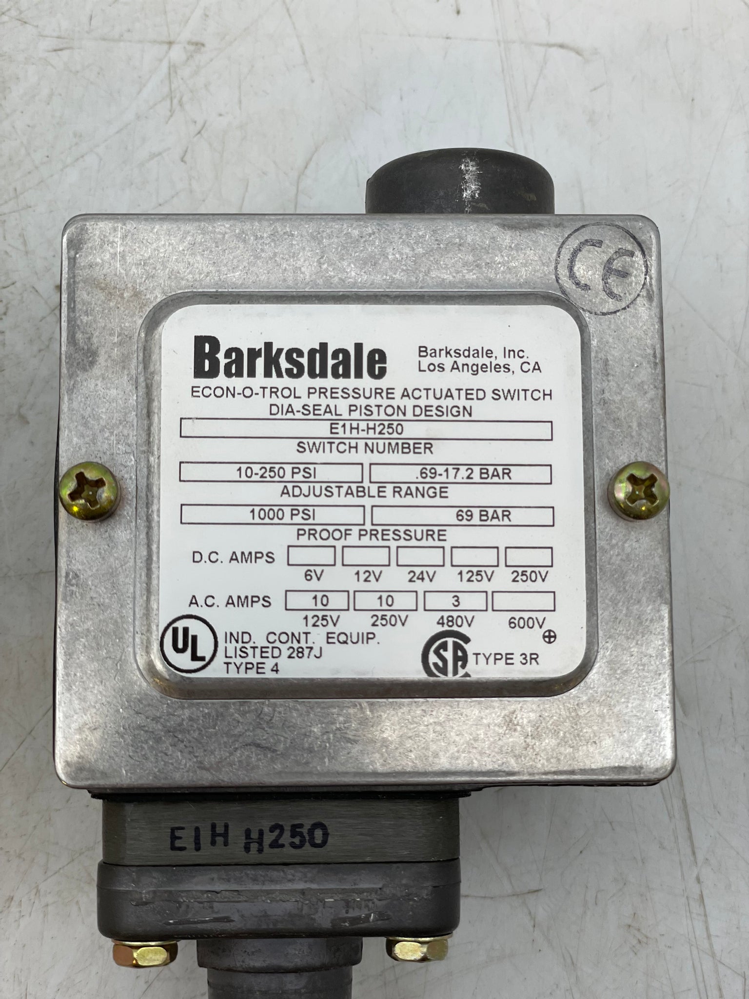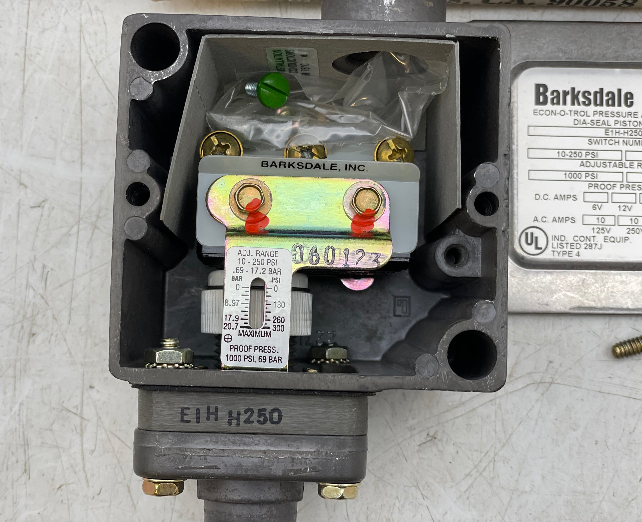 Barksdale E1H-H250 ECON-O-TROL Pressure Actuated Switch, 10-250 PSI, New