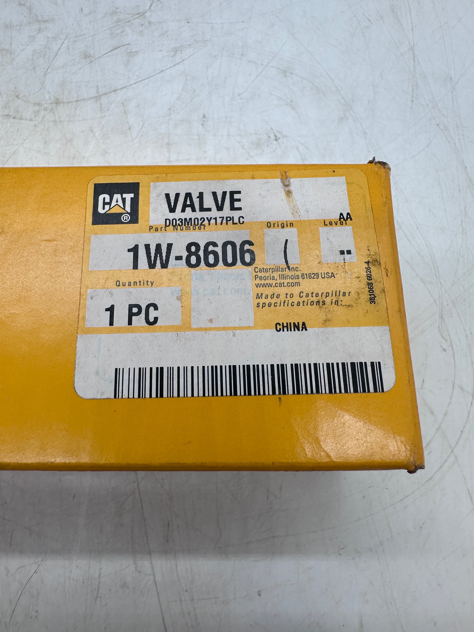 Caterpillar 1W-8606 OEM Inlet Valve, 238.54mm Long, New-Box May Show Signs of Wear From Storage-See Pictures