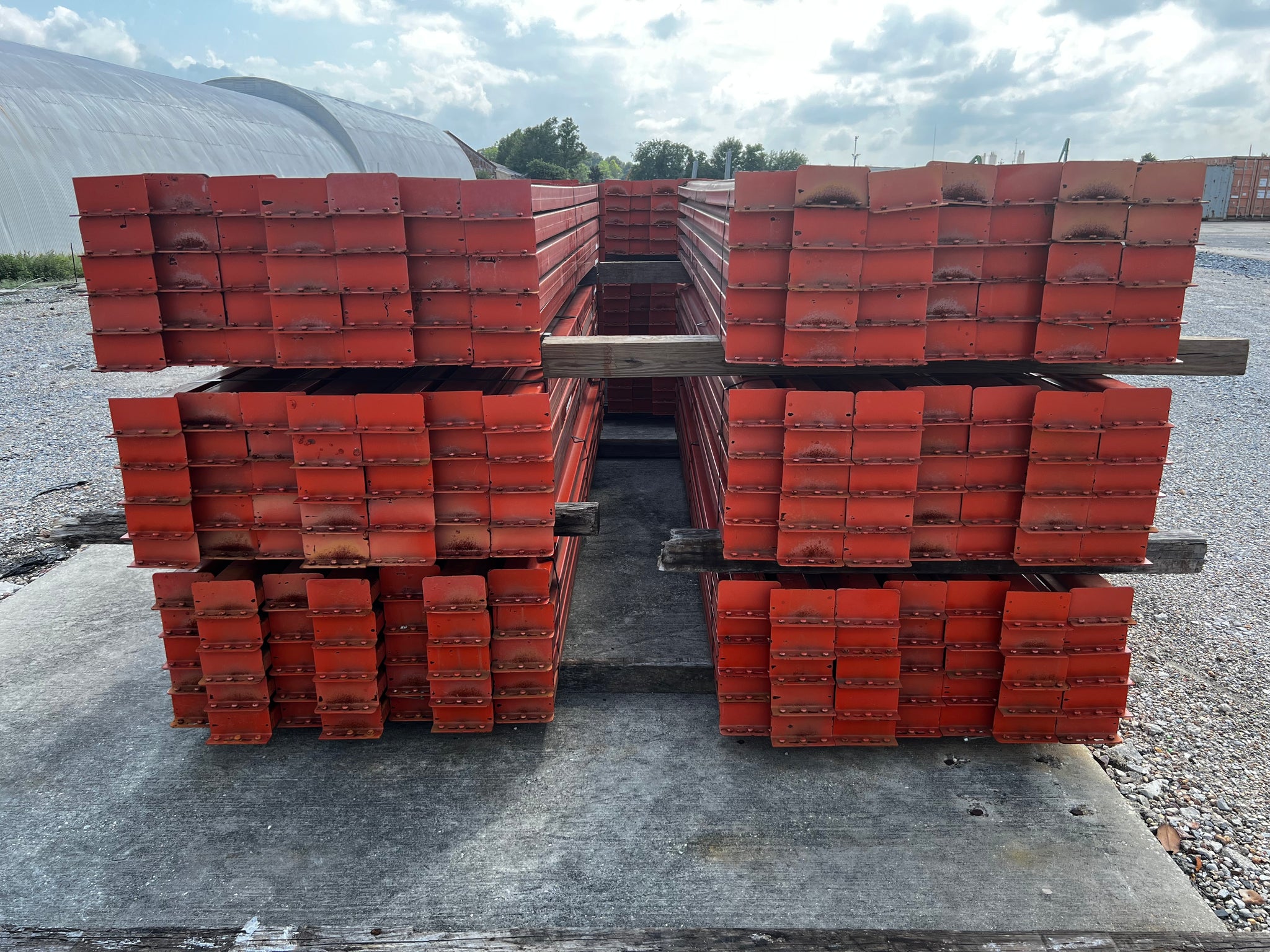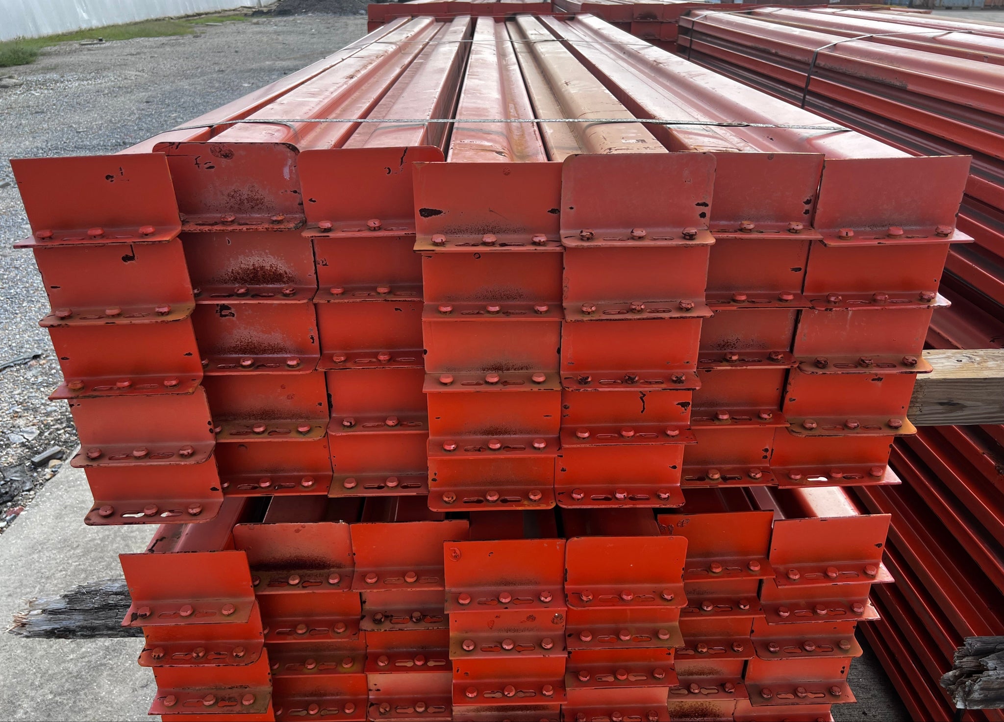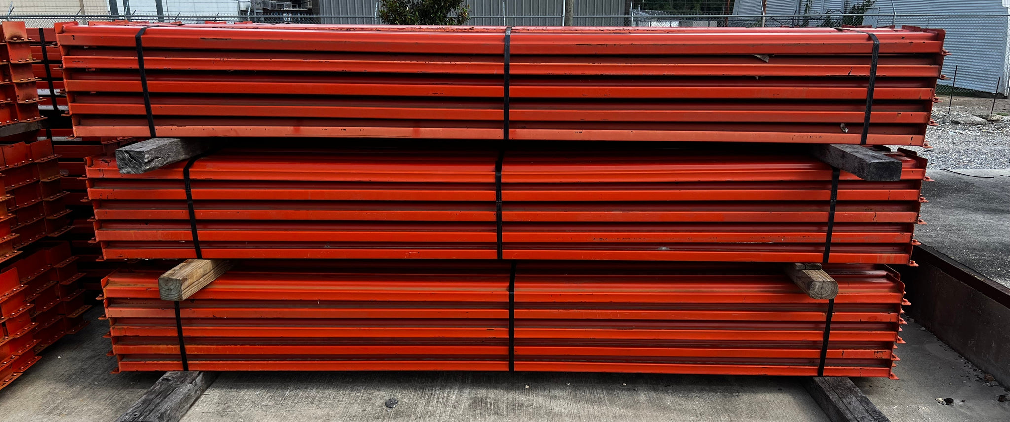 Pallet Rack Horizontal Beam 120” (10') Length x 4.5” Face, 3-Stud Circle Teardrop Connection, *Lot of (35) Beams*, Used