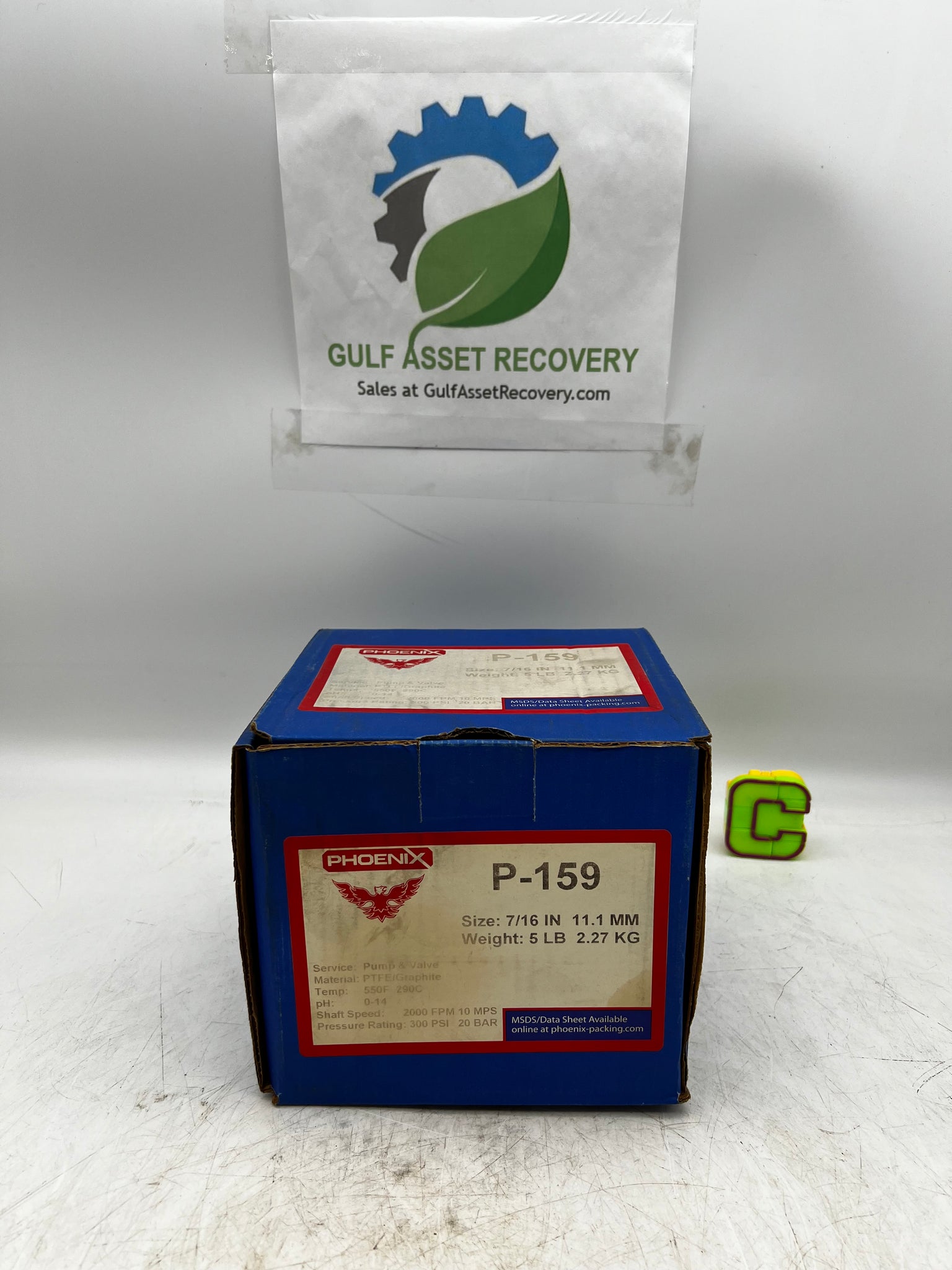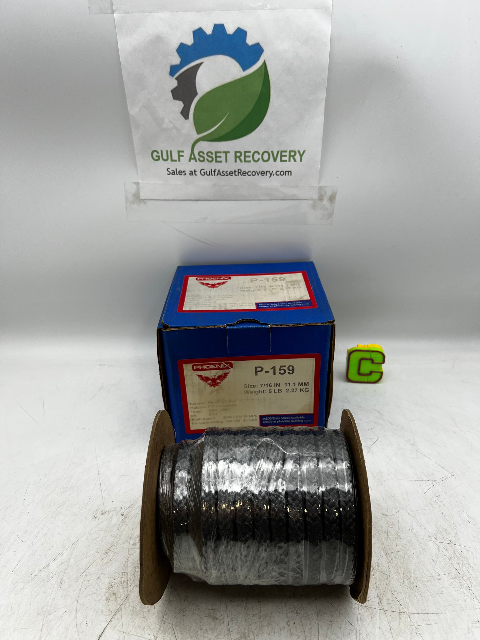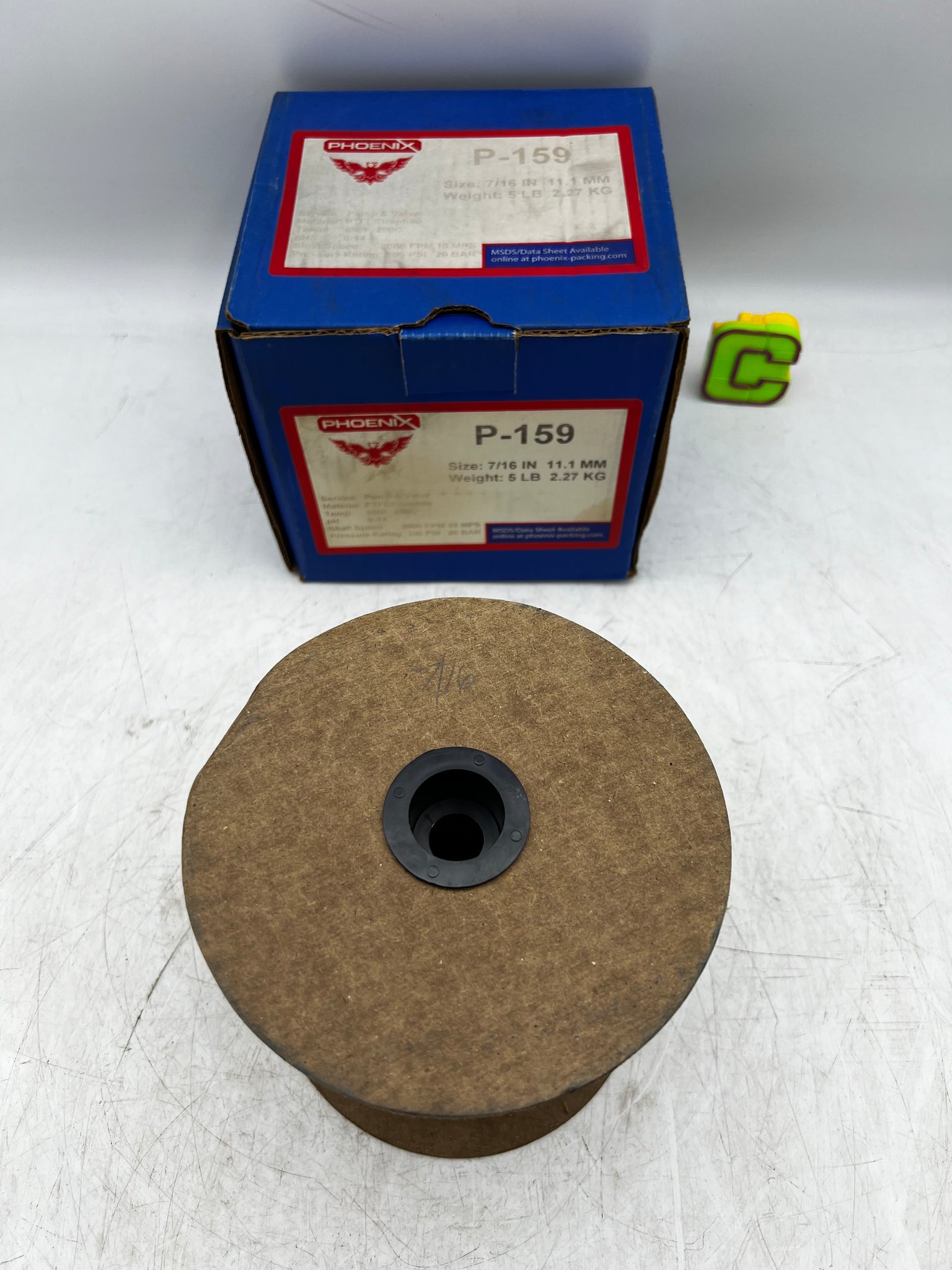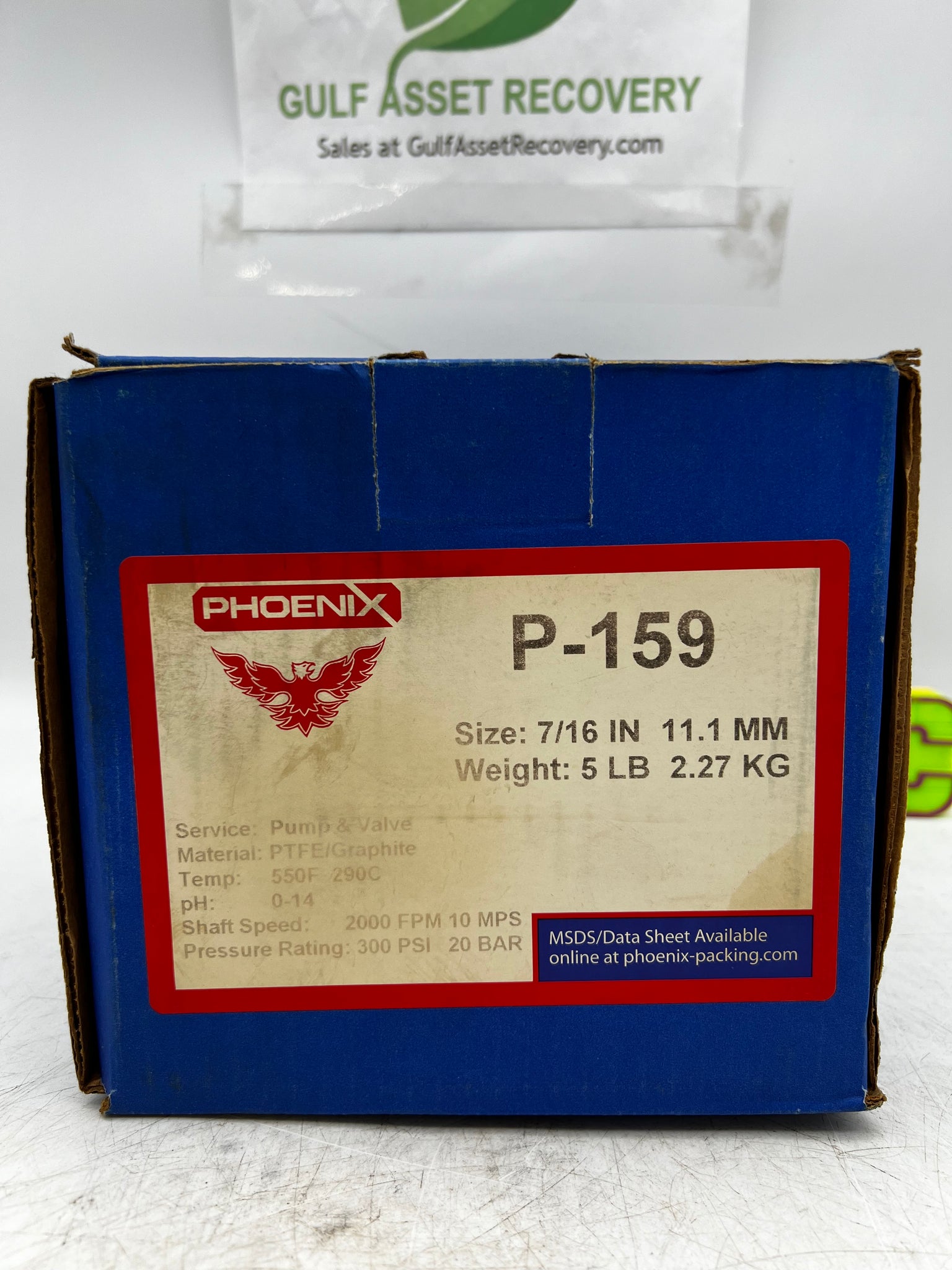 Phoenix P-159 Pump & Valve Packing, 7/16", PTFE/Graphite, 11.1 MM, 5 pound, 300 PSI, 2000 FPM, 10 MPS, pH 0-14, 550 degree F.- New- Product Box May Show Signs of Wear Due to Storage/Handling.