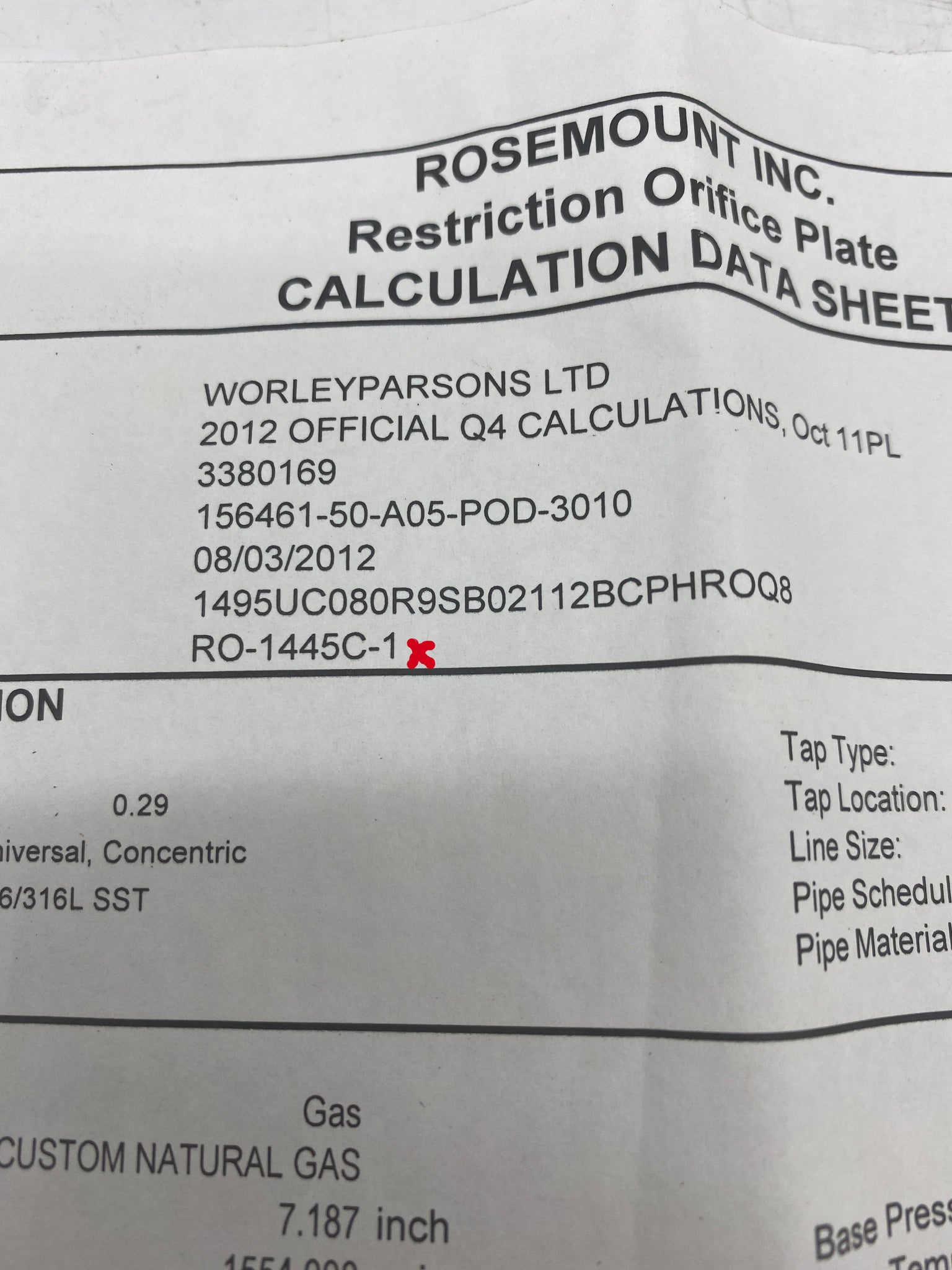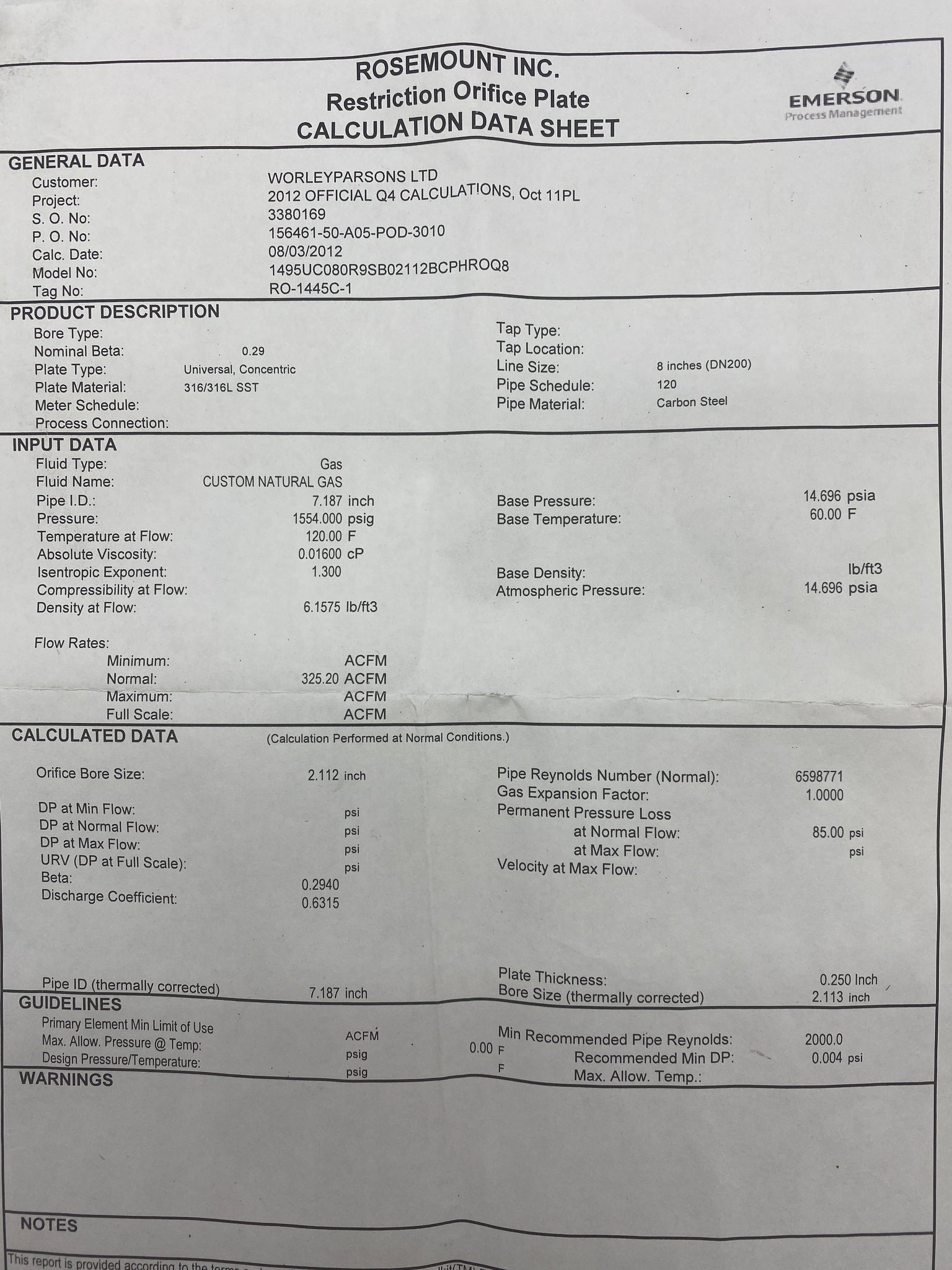 Emerson Rosemount 1495 8" 900# Orifice Plate, 316 SS/316L, 2.112" Bore, New-Open Box