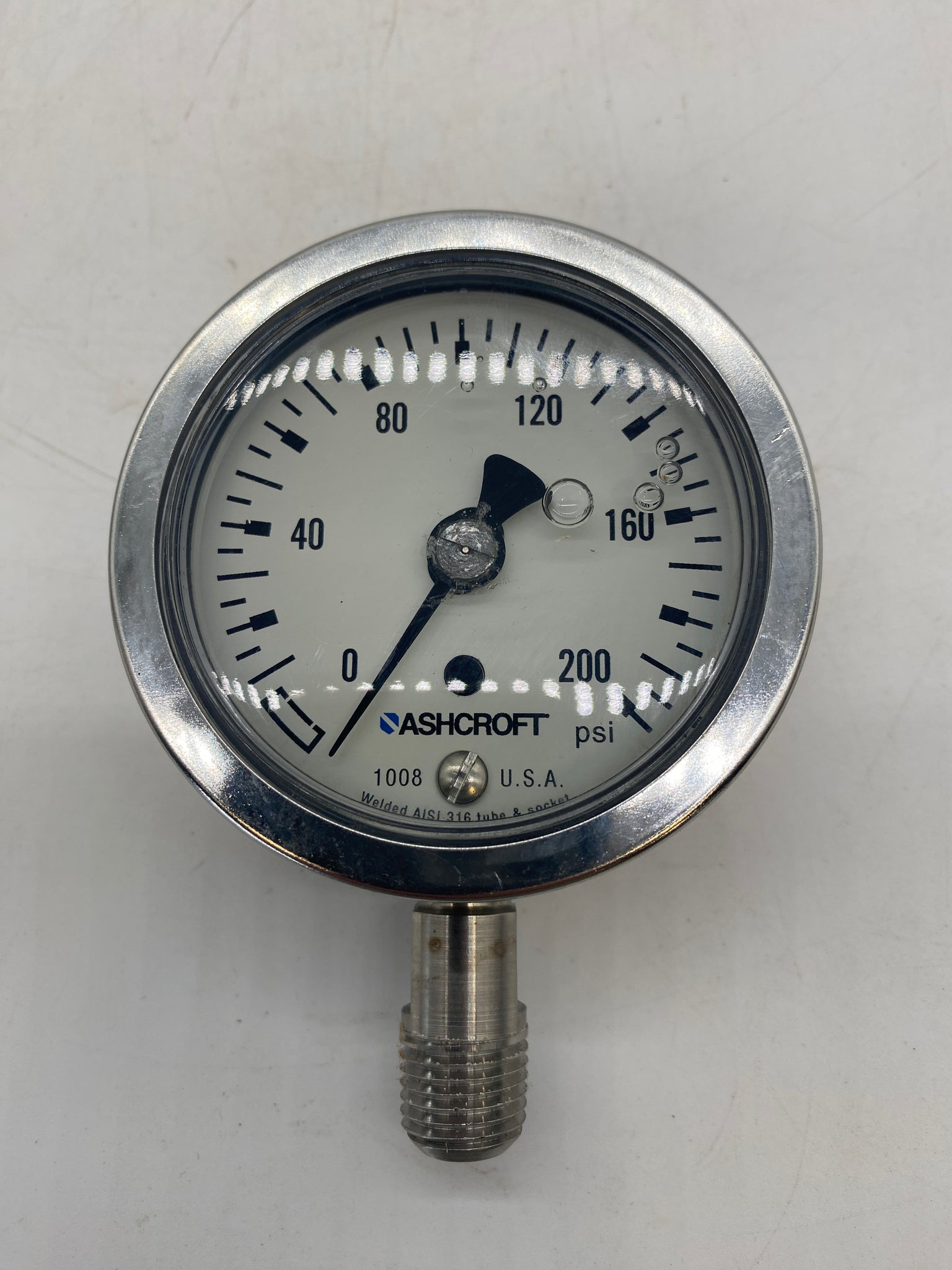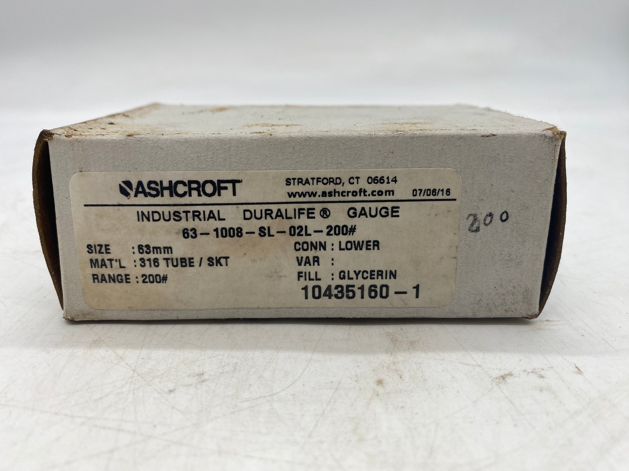 Ashcroft 63-1008-SL-02L-200# Pressure Gauge, 0-200 PSI, Glycerin Filled, *Lot of (2)*, New-Open Box-Box May Show Signs Of Wear From Storage