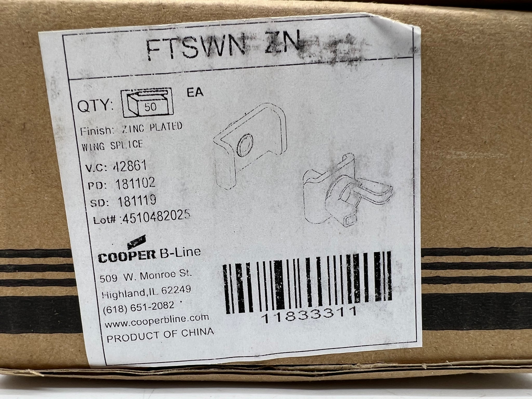 Cooper B-Line FTSWN-ZN Flex Tray Wing Splice, *Box of (50)*, New,