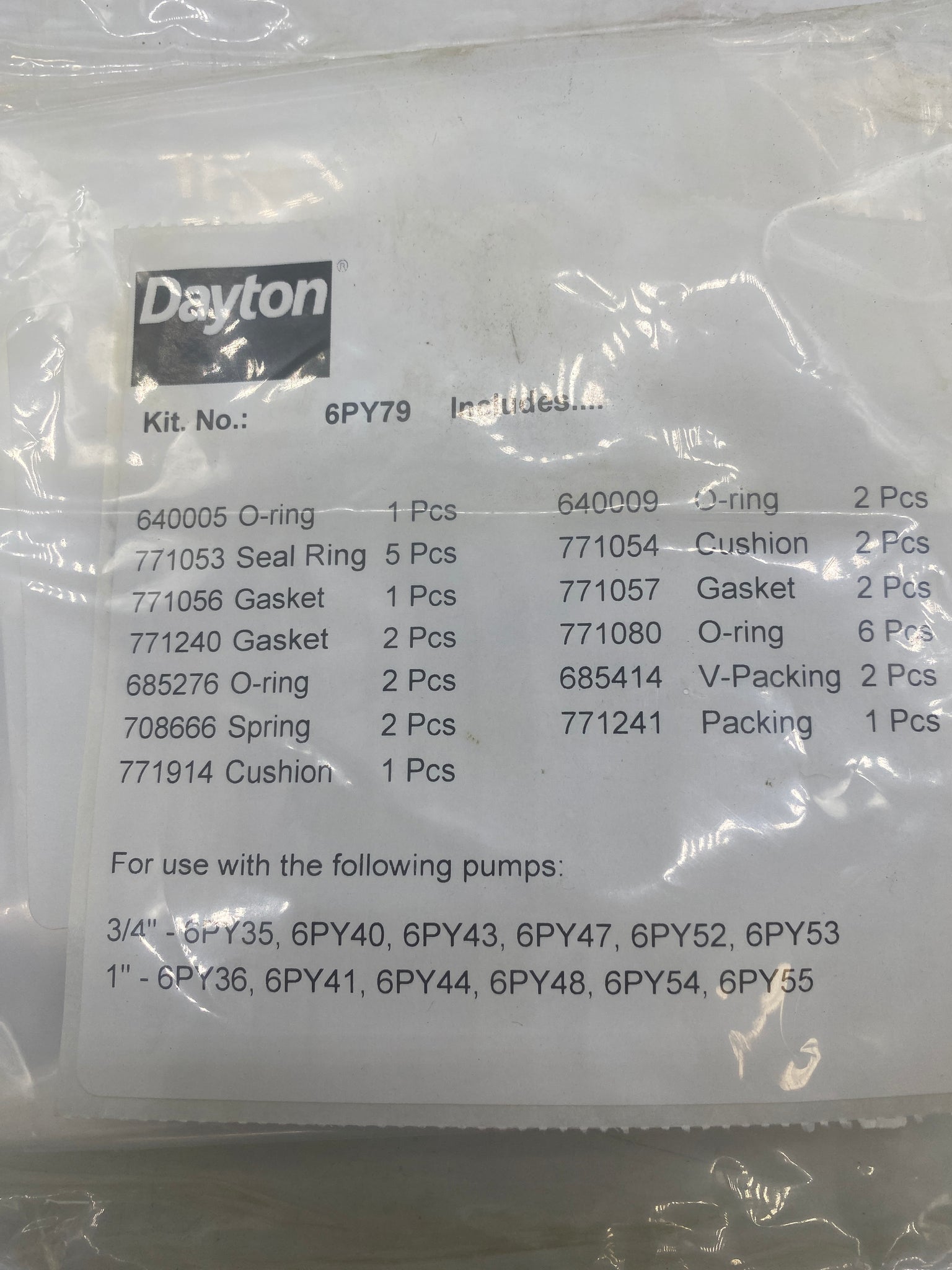 Dayton 6PY79 Air Motor Repair Kit, 3/4" & 1",  New-Open Box-Product In Original Sealed Packaging