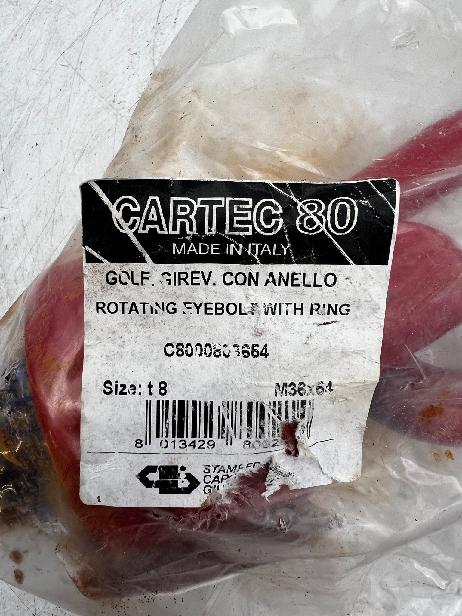 Cartec C8000803654 Rotating Eyebolt w/ Ring, Grade 80 8 Ton, M36x54mm, 12,500lb Load Capacity, New-Item(s) or Packaging May Have Minor Wear From Storage - See Pictures