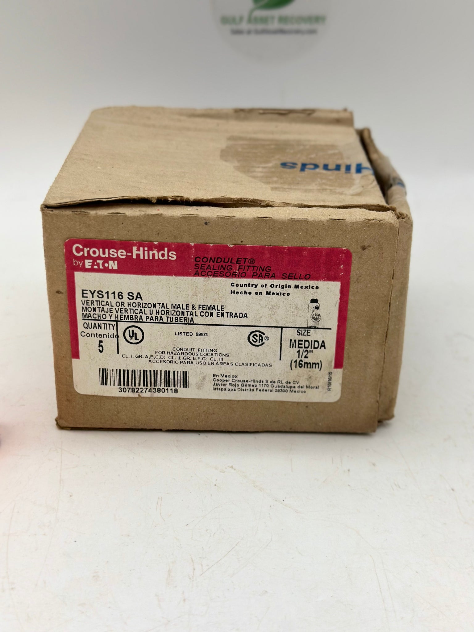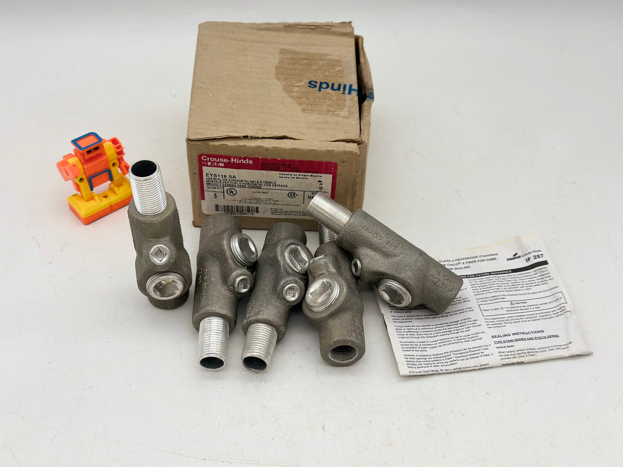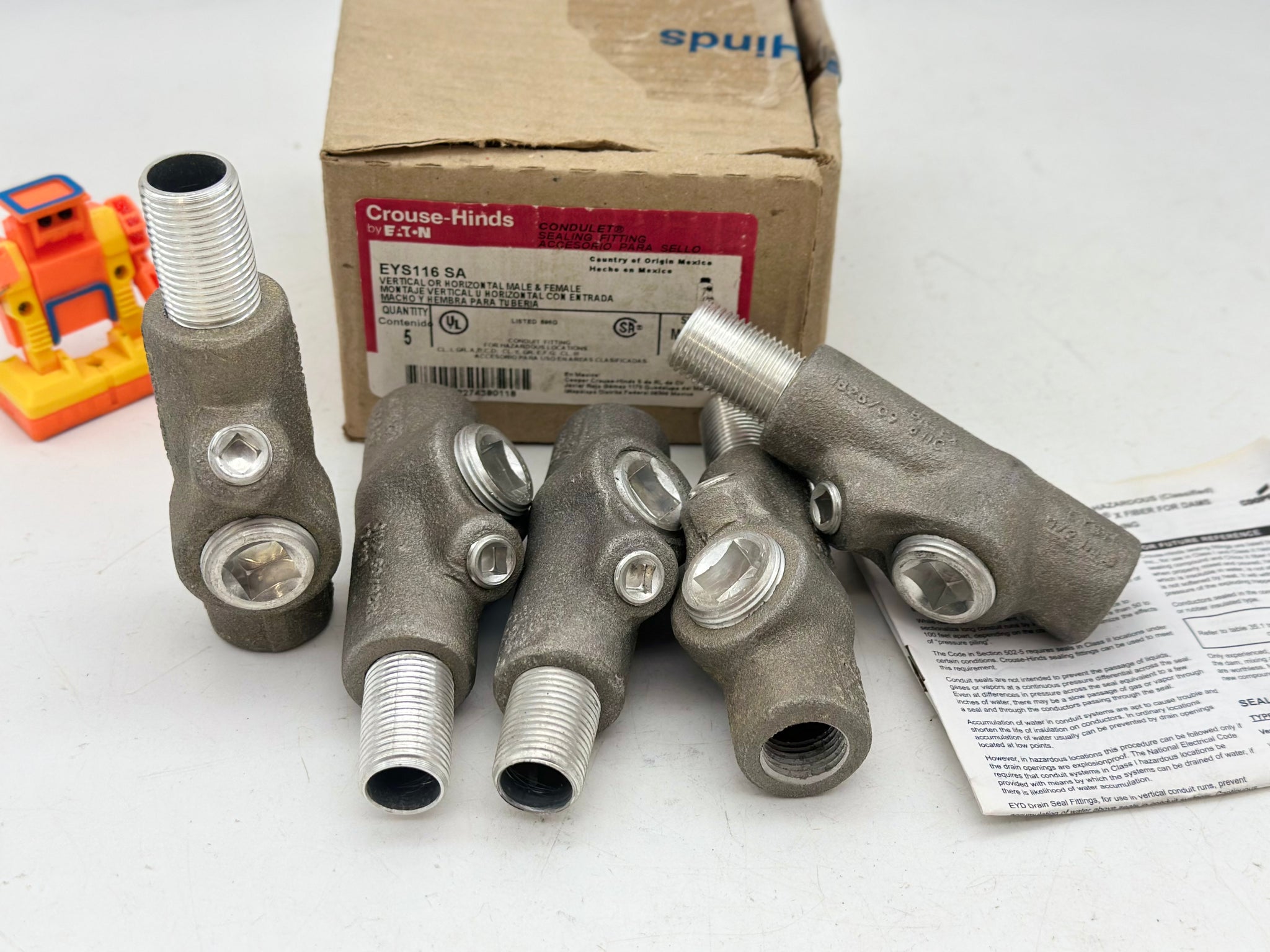 Eaton Crouse-Hinds EYS116-SA Vertical or Horizontal Male and Female Sealing Fitting, 1/2", *Box of (5)*, New-Item/Box May Show Some Signs of Wear from Storage-See Pictures