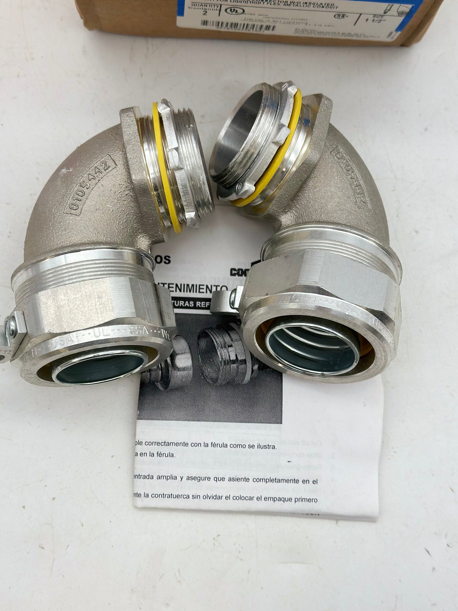Eaton Crouse-Hinds LT15090G-SA 90-Deg Liquidtight Connector w/ Grounding Lug, 1-1/2", *Box of (2)*, New-Box and/or Item May Show Minor Wear From Storage