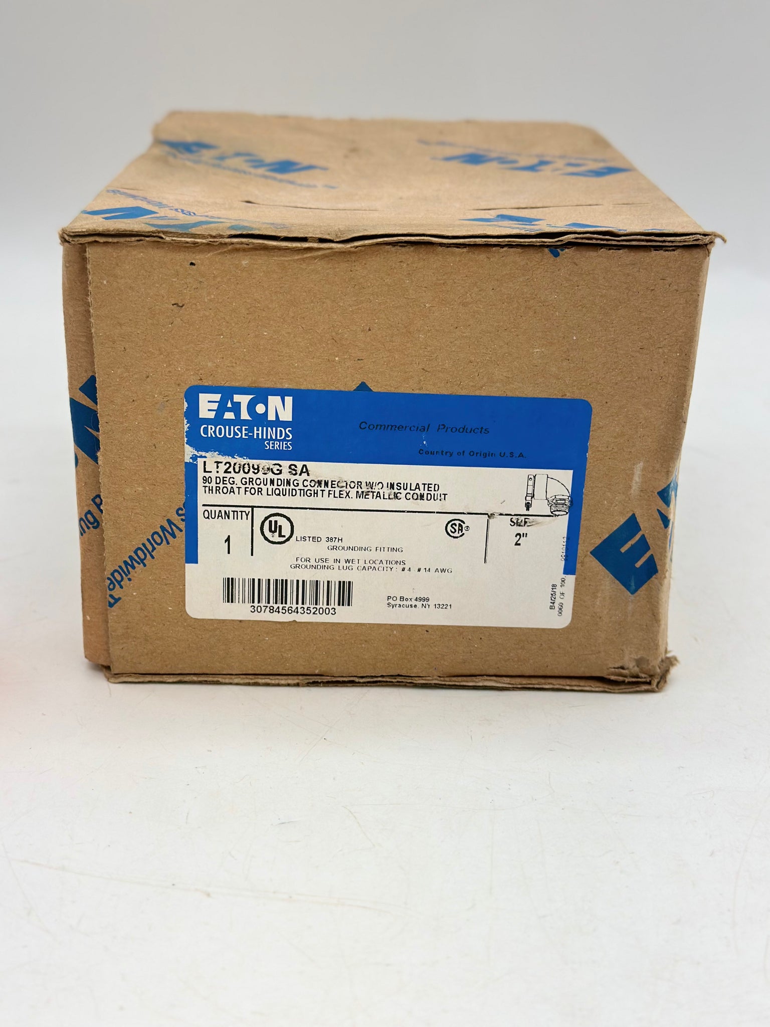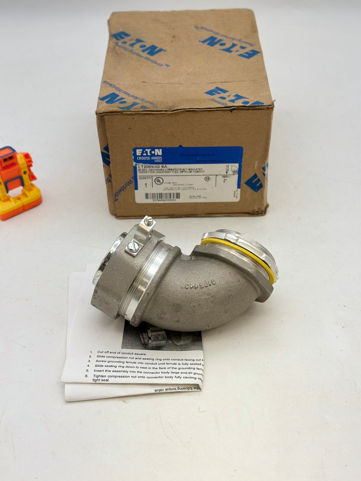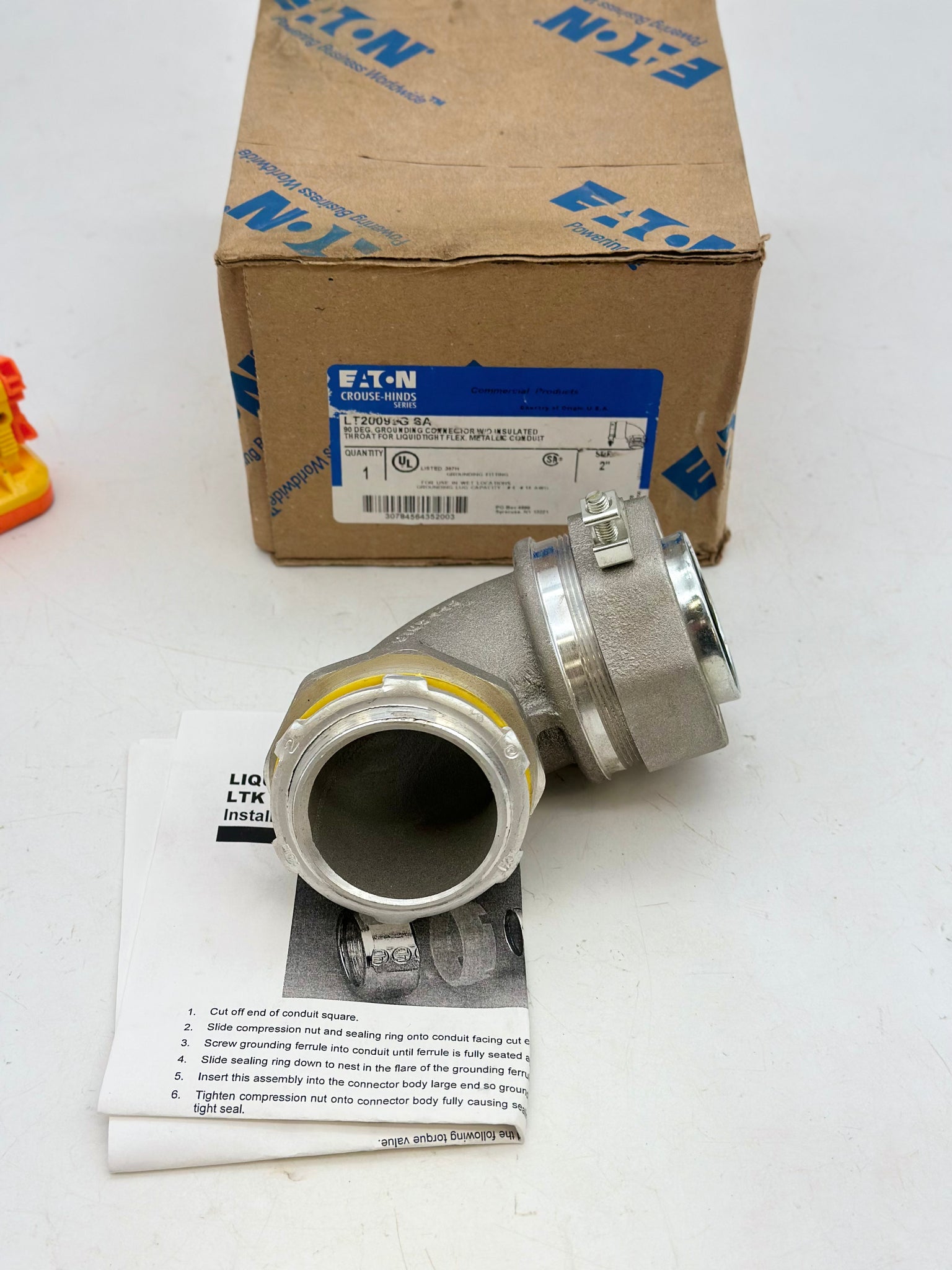 Eaton Crouse-Hinds LT20090G-SA Liquidtight Straight Connector w/ Grounding Lug w/o Insulated Throat for Liquidtight Flexible Metallic Conduit, 2", New-Box May Show Minor Wear From Storage-See Pictures