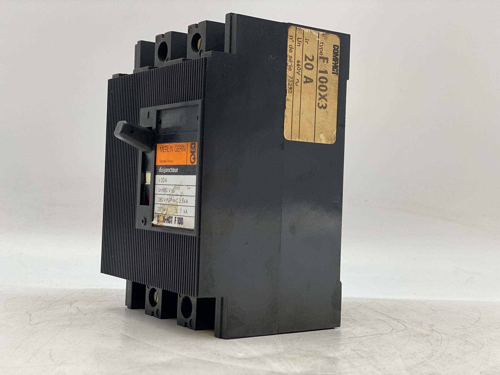 Merlin Gerin F100X3 Circuit Breaker, 20A, 3-Pole, 660VAC, Used