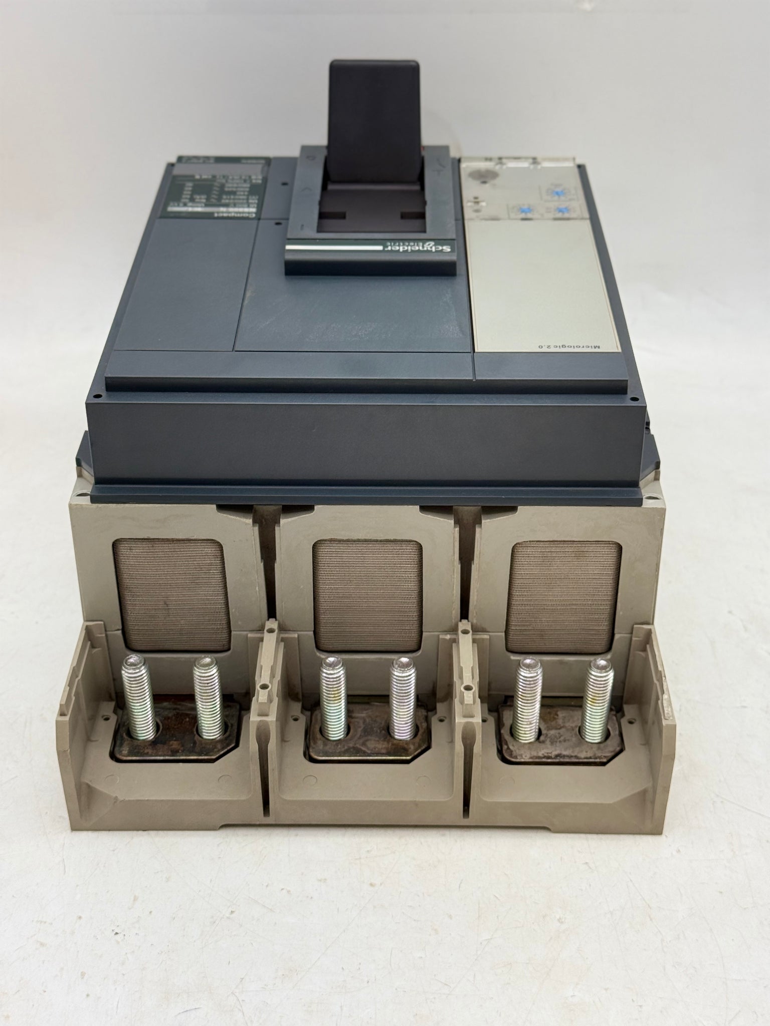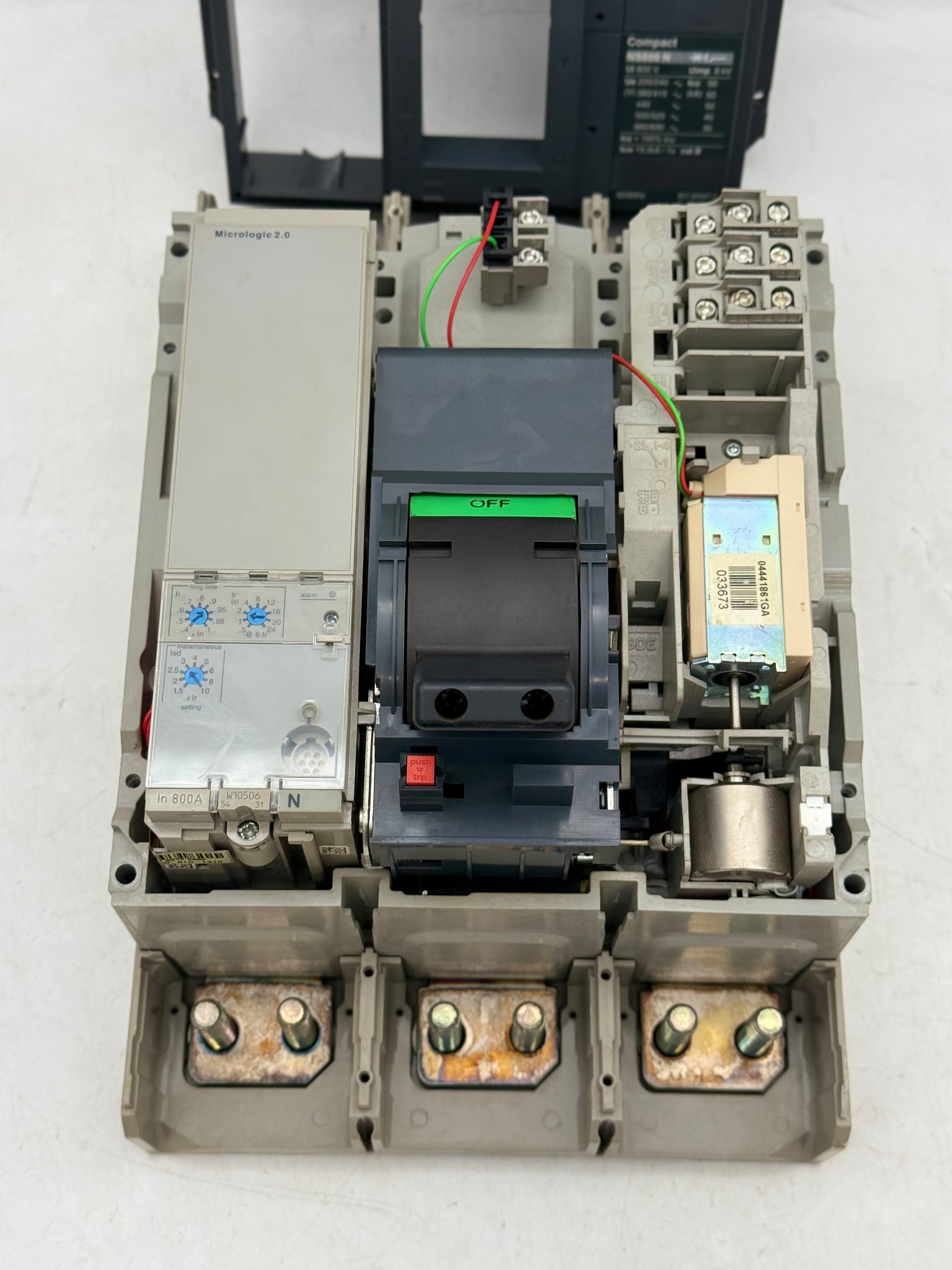 Schneider Electric 33466 NS800N Compact Circuit Breaker, 800A, 3-Pole, w/ MicroLogic 2.0, 33673 UVR Undervoltage Release Accessory, Used