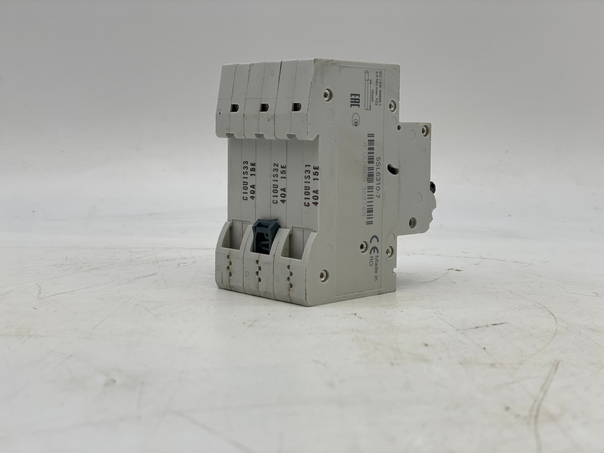 Siemens 5SL6310-7 400VAC 6kA 3-Pole Type C Trip Class 10A Circuit Breaker, Used