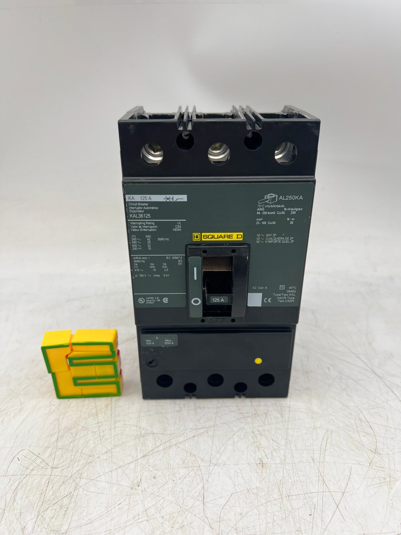 Square D KAL36125 Circuit Breaker, 125A, 600VAC, 250VDC, 3-Pole, New-Open Box-Breaker Has Small Chip On Exterior Plastic Frame-See Pictures