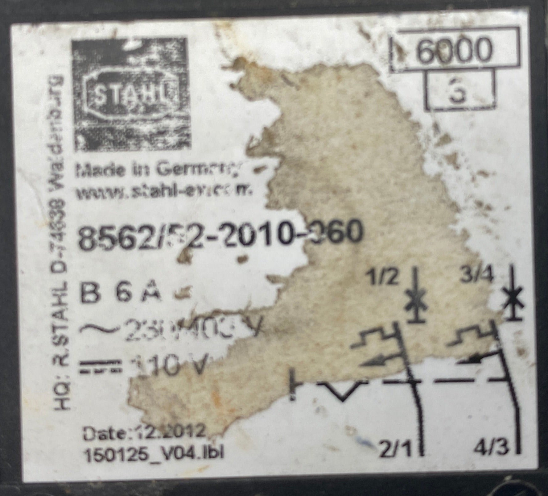 Stahl 8562/52-2010-060 Circuit Breaker 6A 230/400VAC 110VDC 2-P (Used)